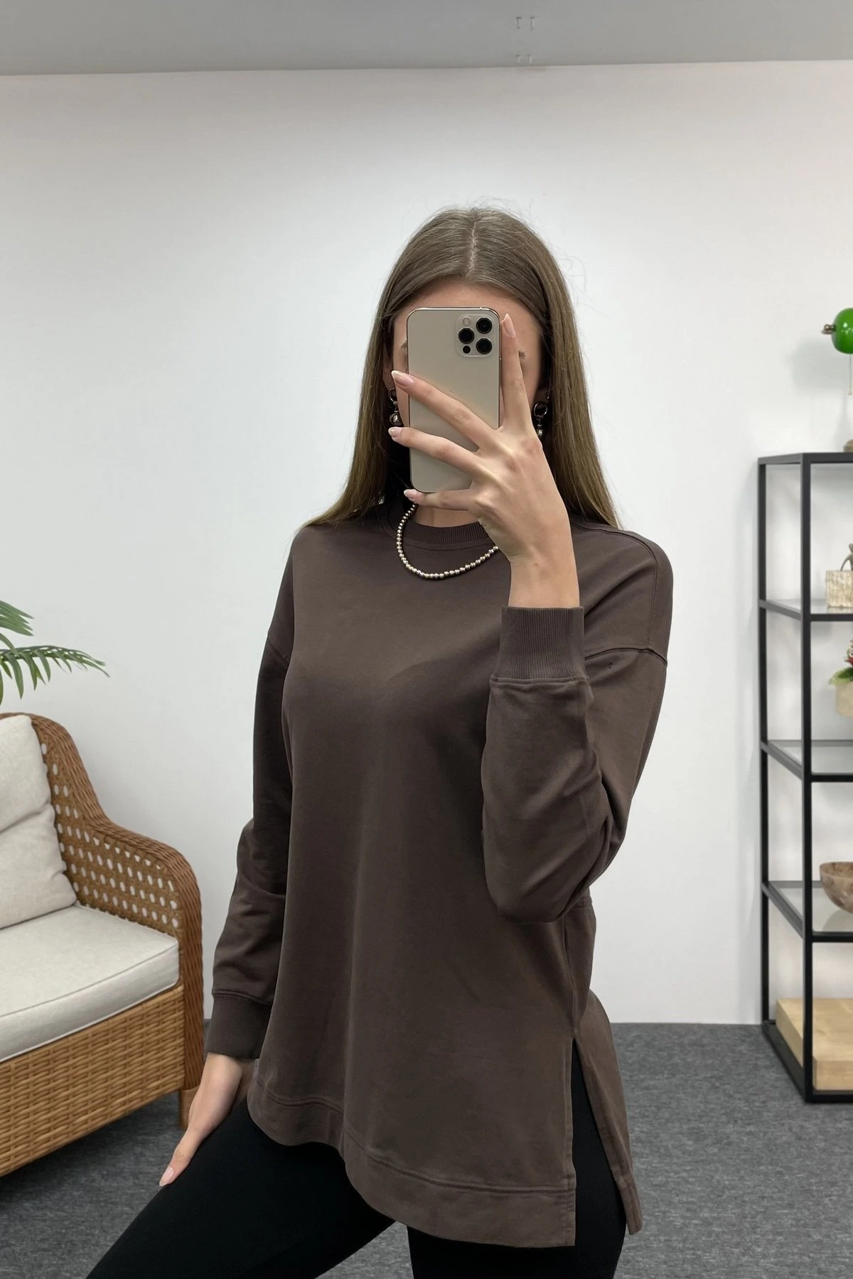 STYLİSH ARKA UZUN SWEAT – TAŞ