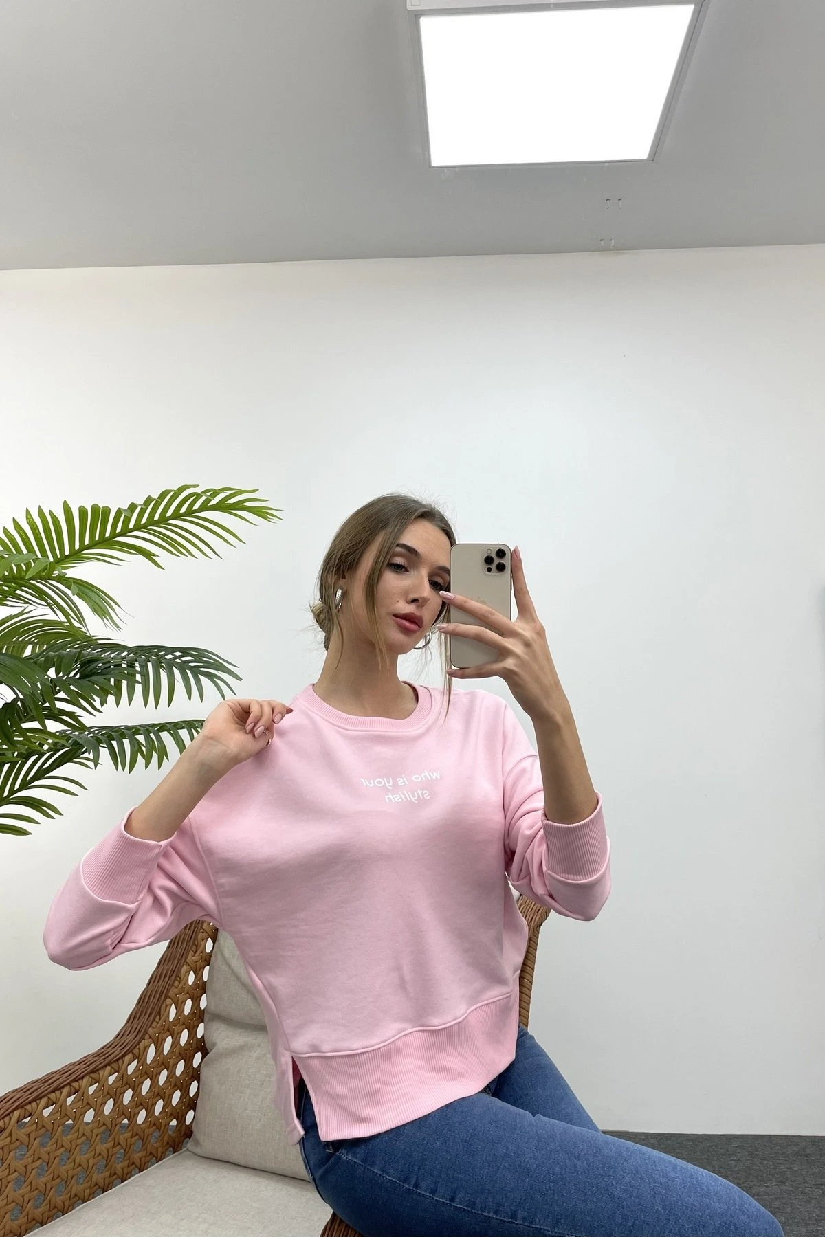 STYLİSH ARKA UZUN SWEAT – AÇIK PEMBE