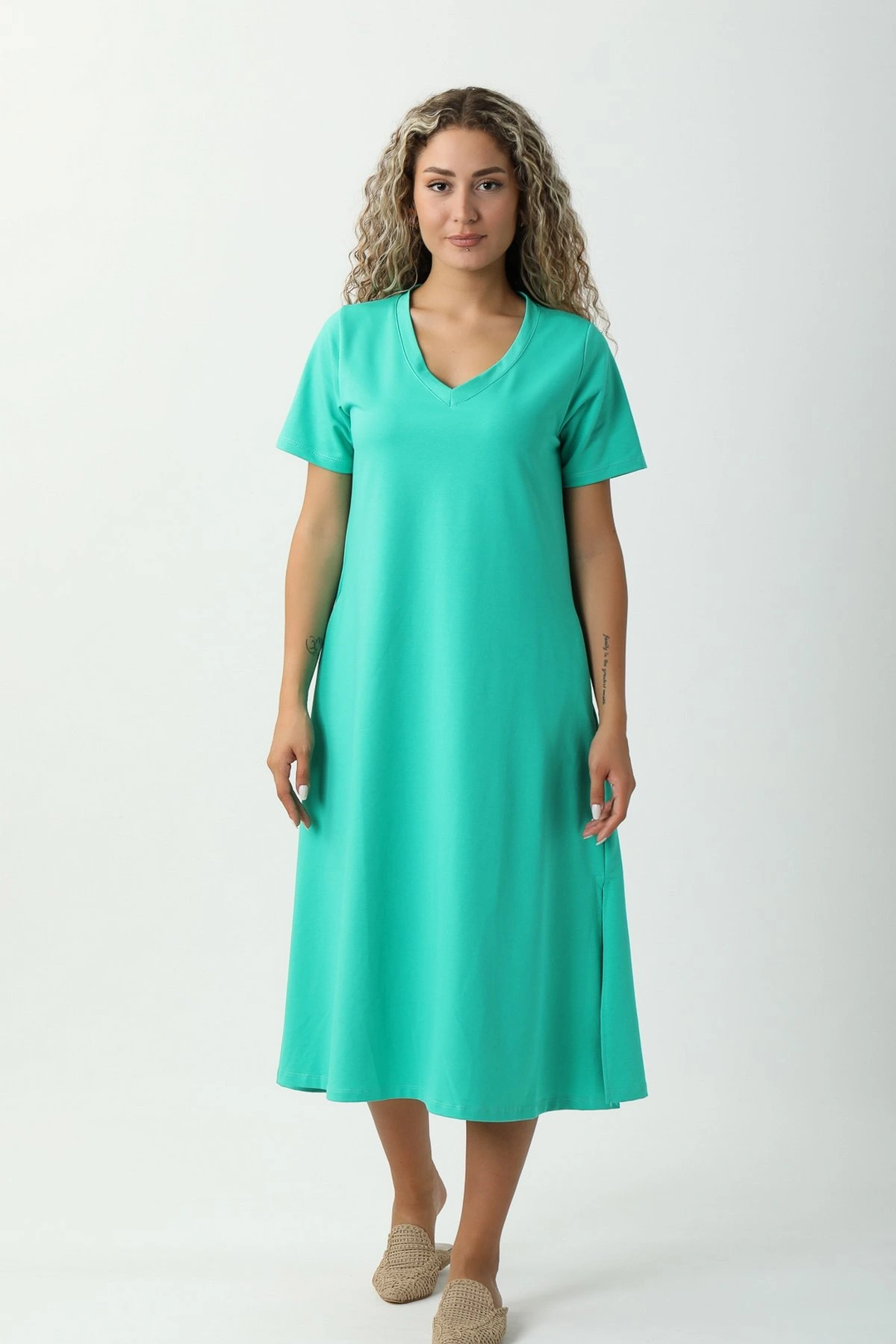 V YAKA PENYE ELBİSE – KÜF YEŞİLİ