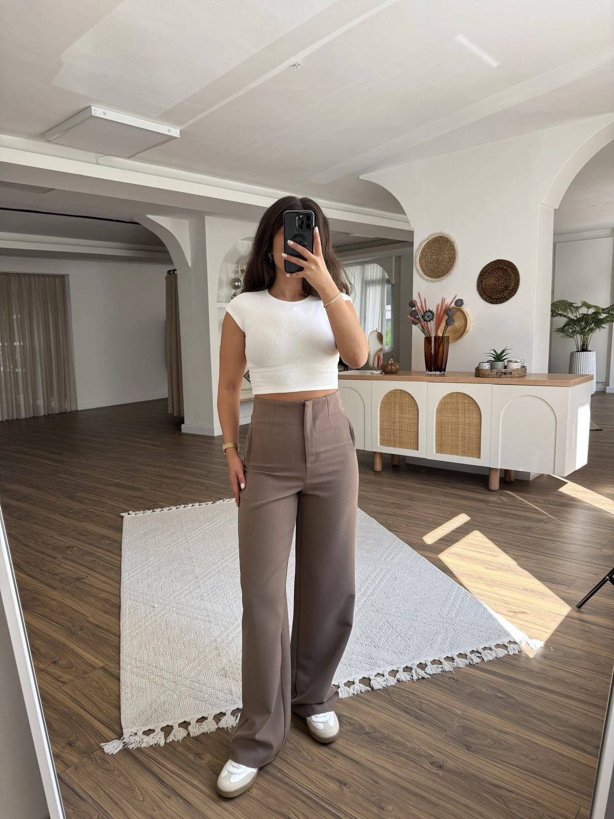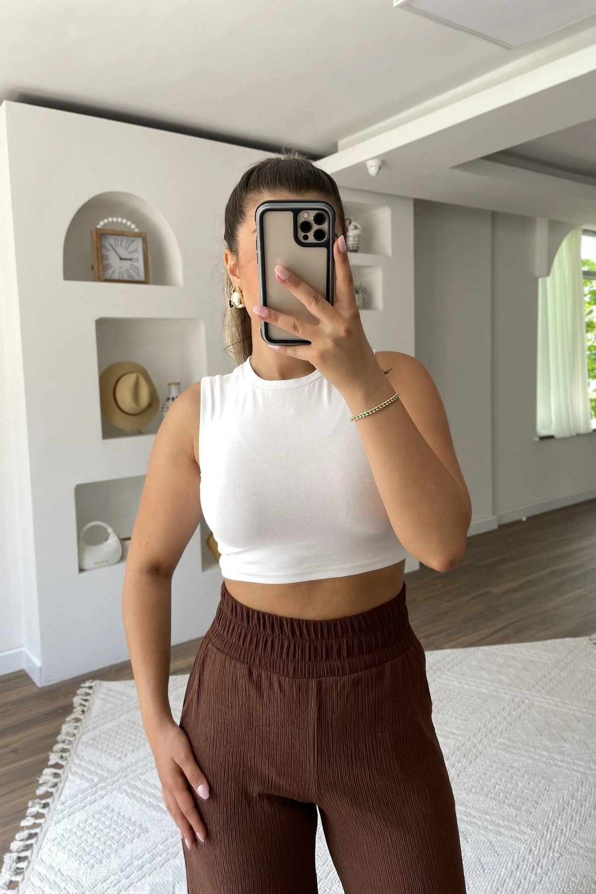 BEL LASTİK BÜRÜMCÜK CEPLİ BOL PAÇA PANTOLON – KAHVE