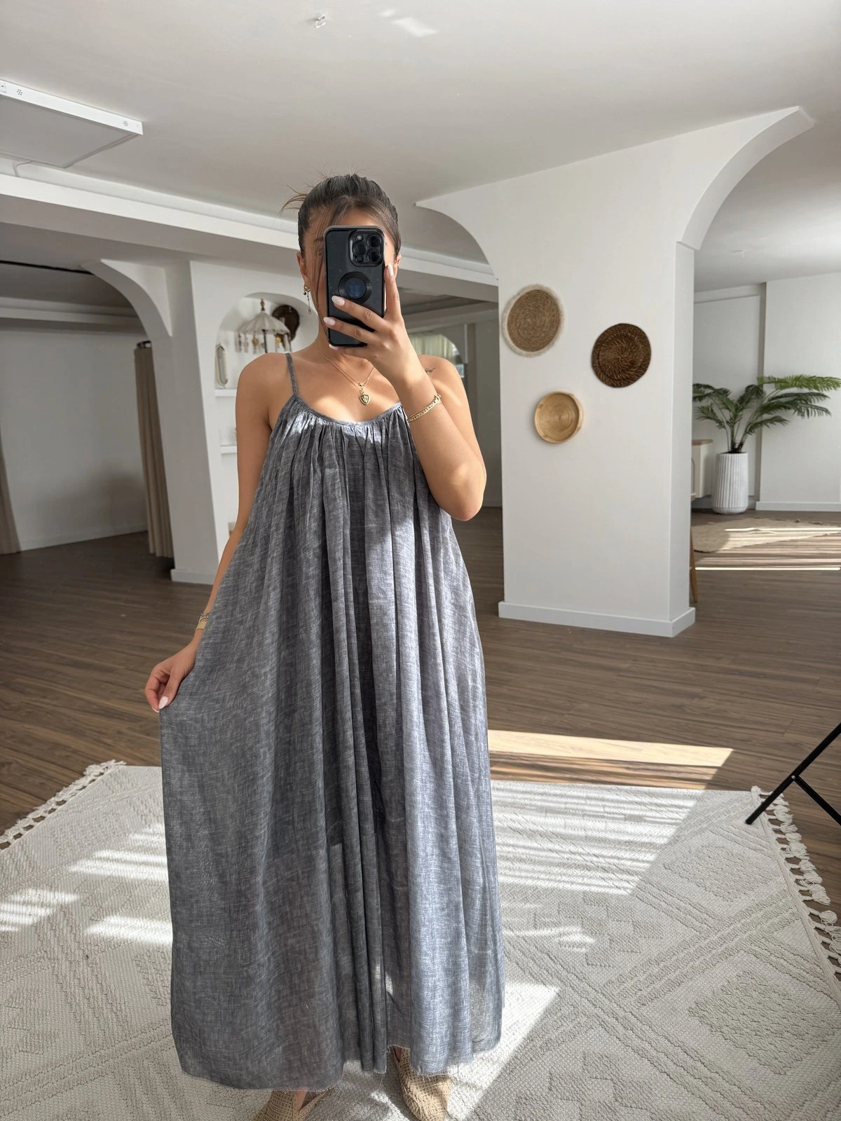 ARKA BAĞLAMALI CEPLİ MODAL RAHAT TULUM – GRİ
