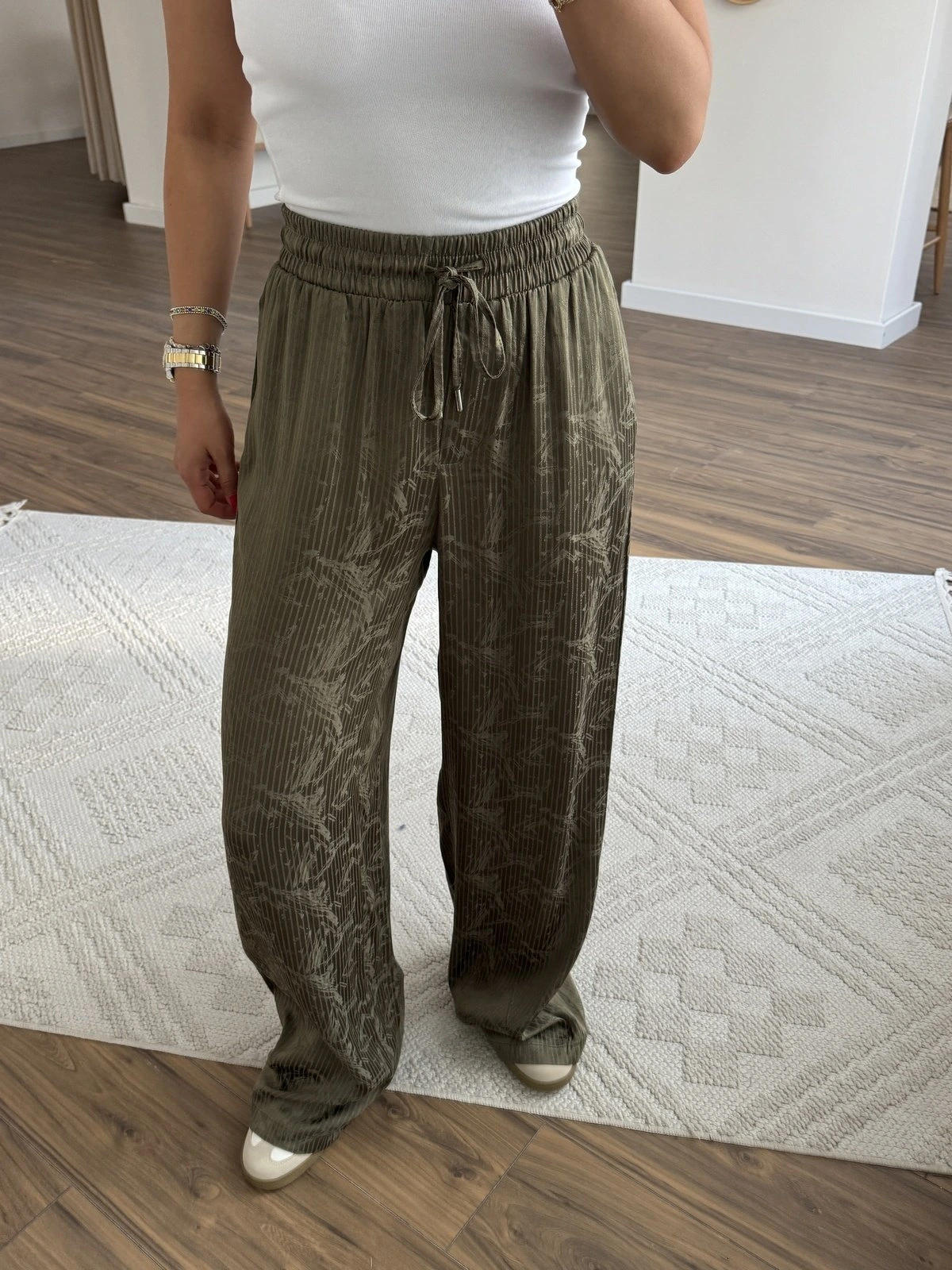 BEL LASTİK CEPLİ İNCE SİM DESEN DOKU VİSKON PANTOLON – HAKİ