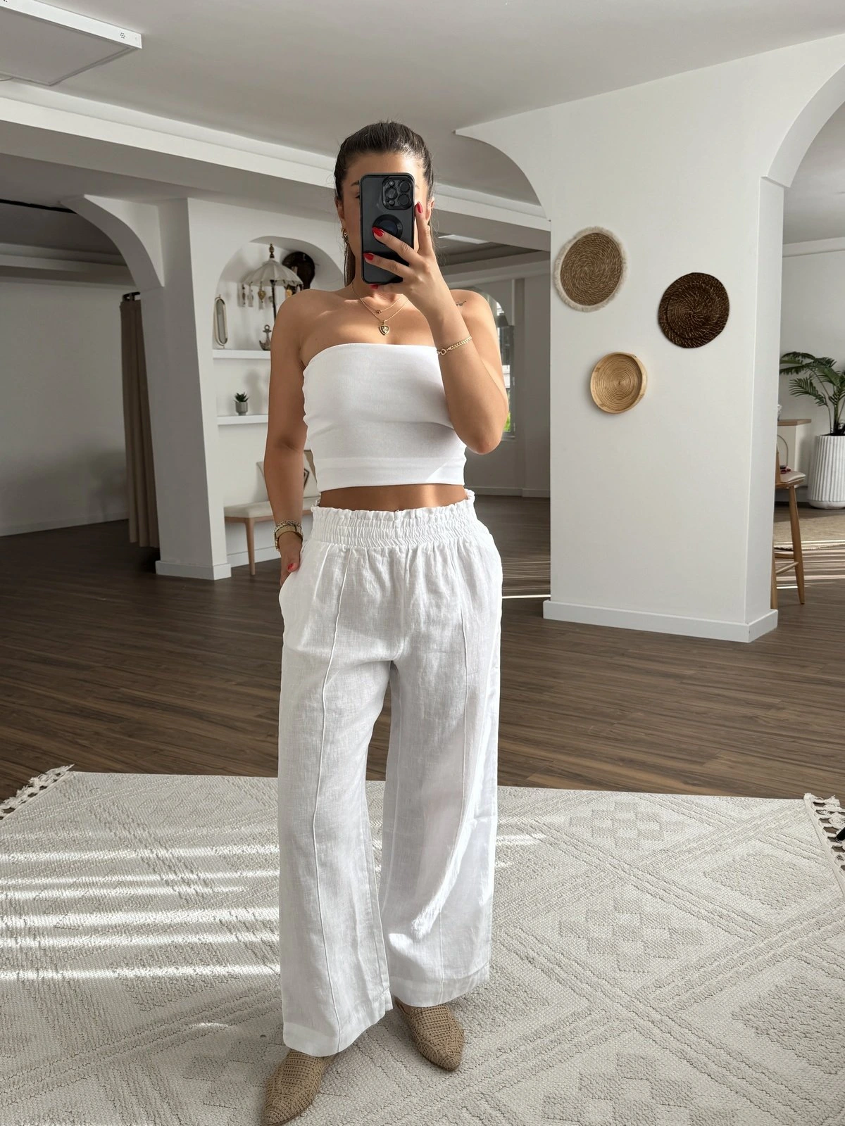 BEL LASTİK CEPLİ ÖN DİKİŞ HAM KETEN PANTOLON – BEYAZ
