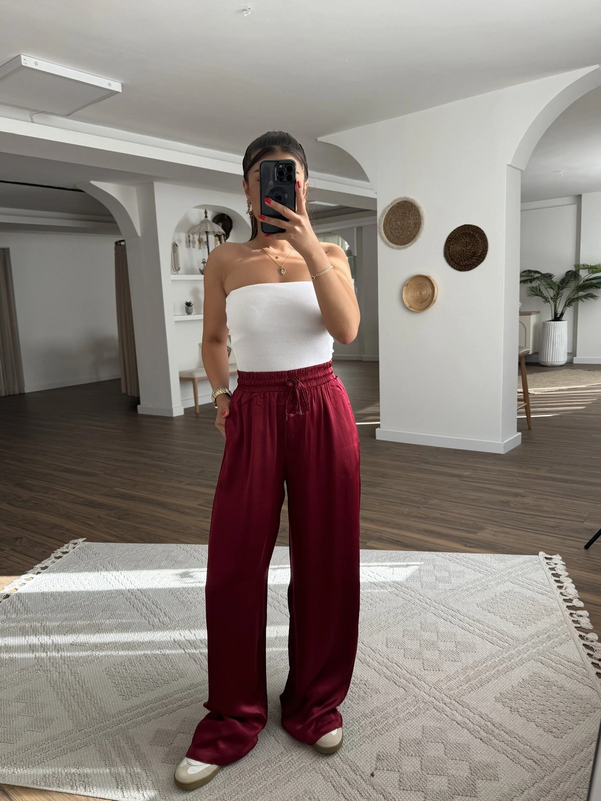 BEL LASTİK CEPLİ VİSKON RAHAT PANTOLON – BORDO