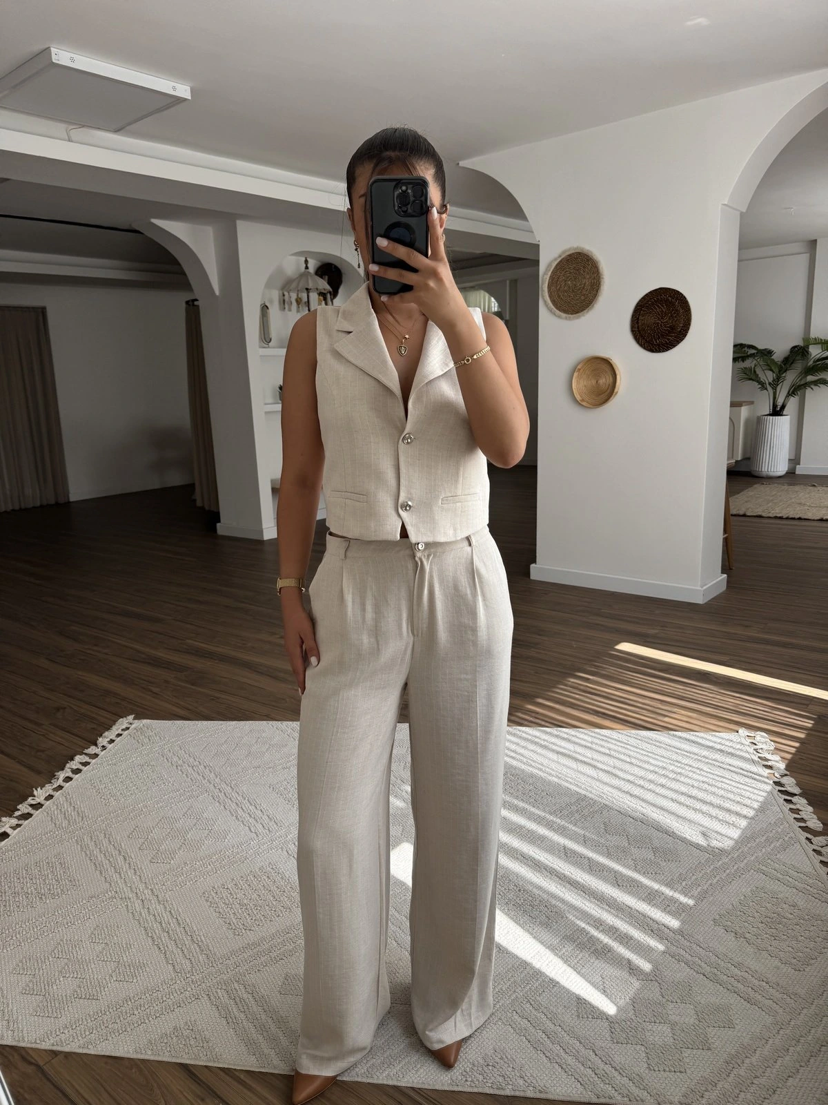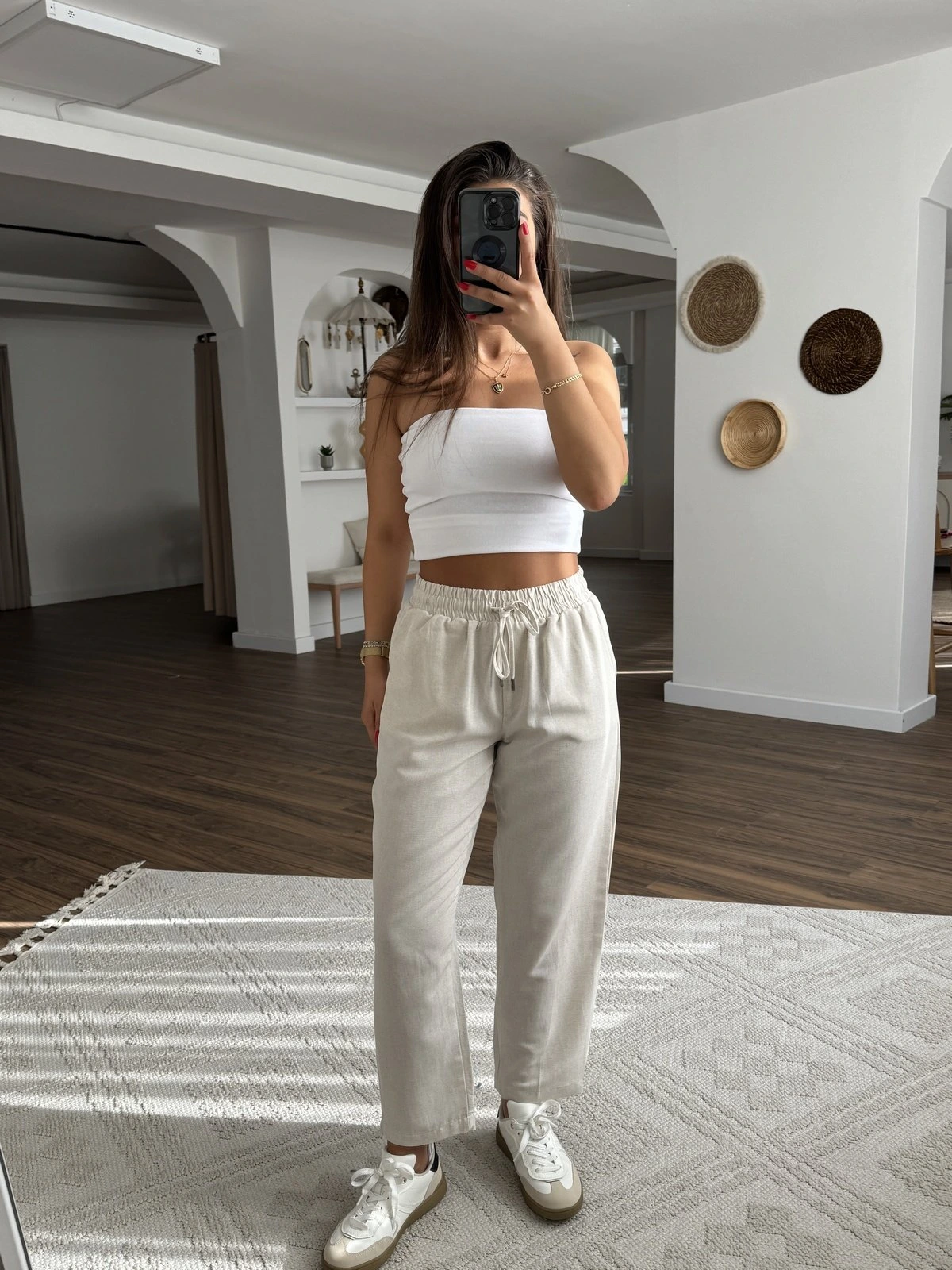 CEPLİ BEL LASTİK VİSKON KETEN PANTOLON – NATUREL