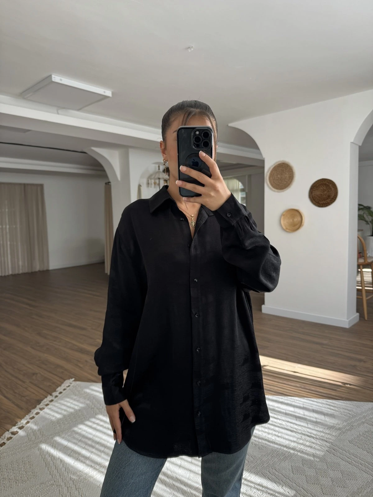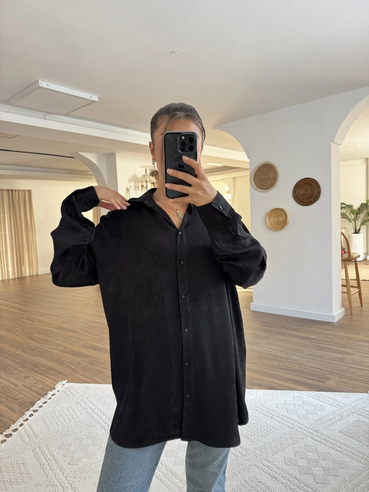 JAKARLI VİSKON SALAŞ GÖMLEK – SİYAH