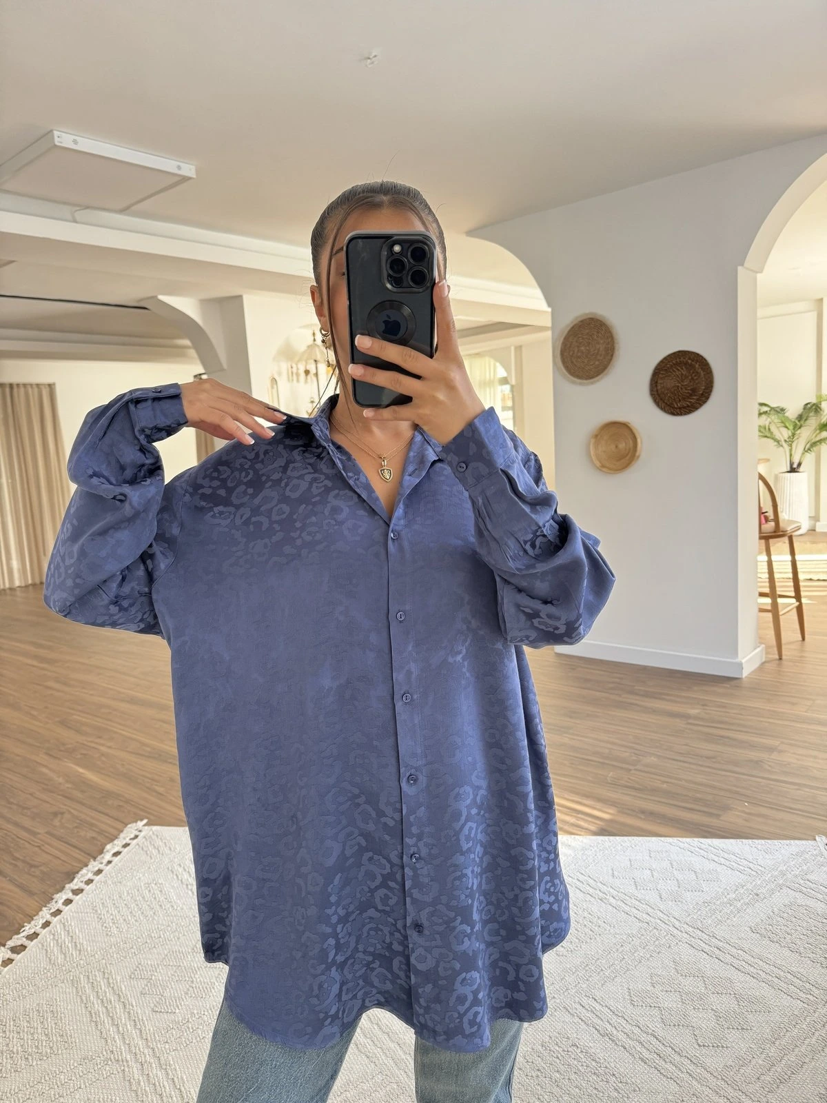 DOKU DESEN JAKARLI VİSKON SALAŞ GÖMLEK – İNDİGO