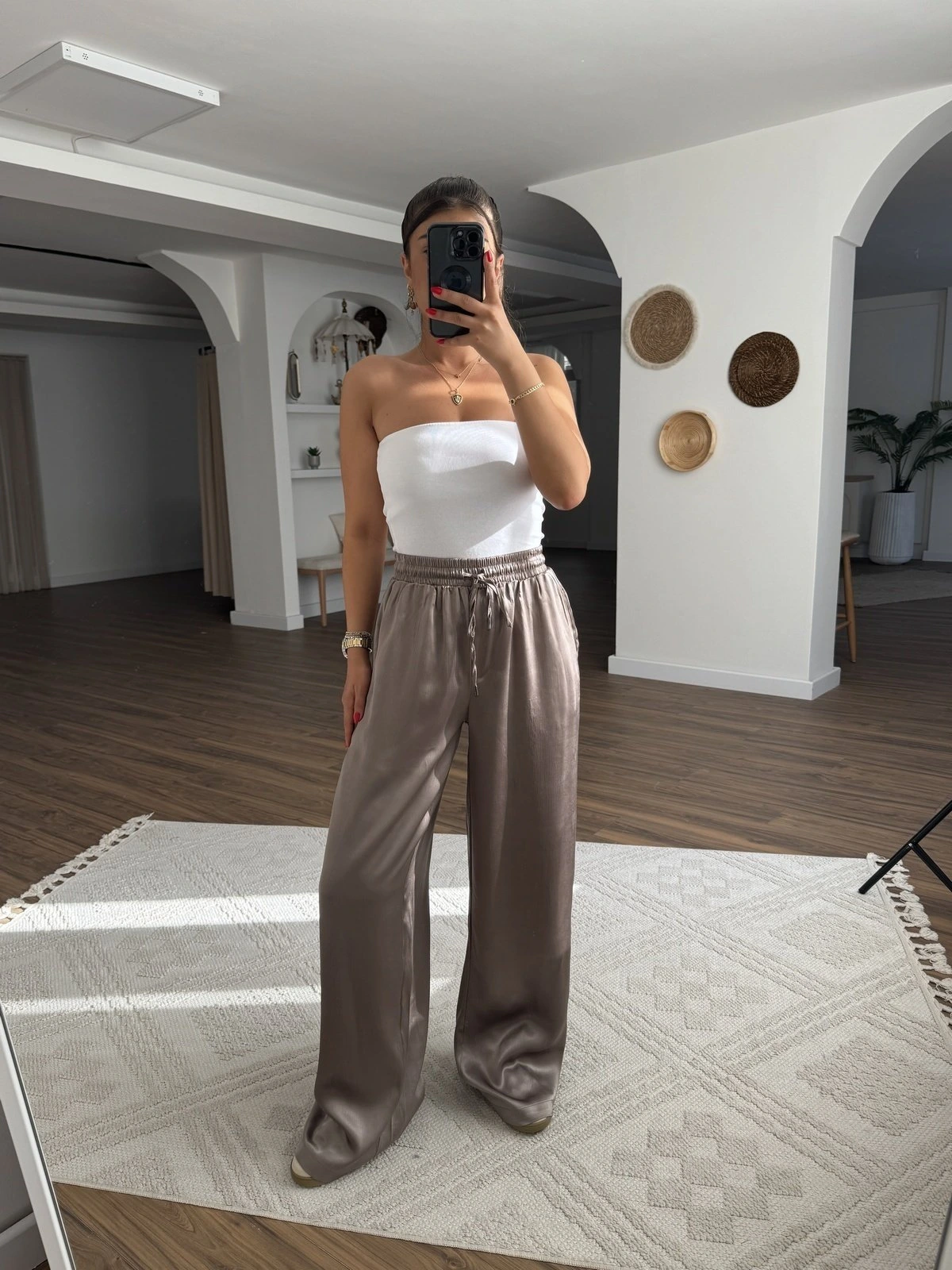 BEL LASTİK BÜRÜMCÜK CEPLİ BOL PAÇA PANTOLON – TABA