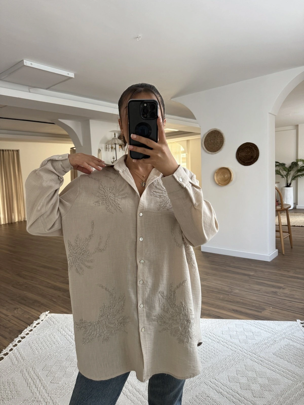 NAKIŞ İŞLEME SALAŞ GÖMLEK – AÇIK BEJ