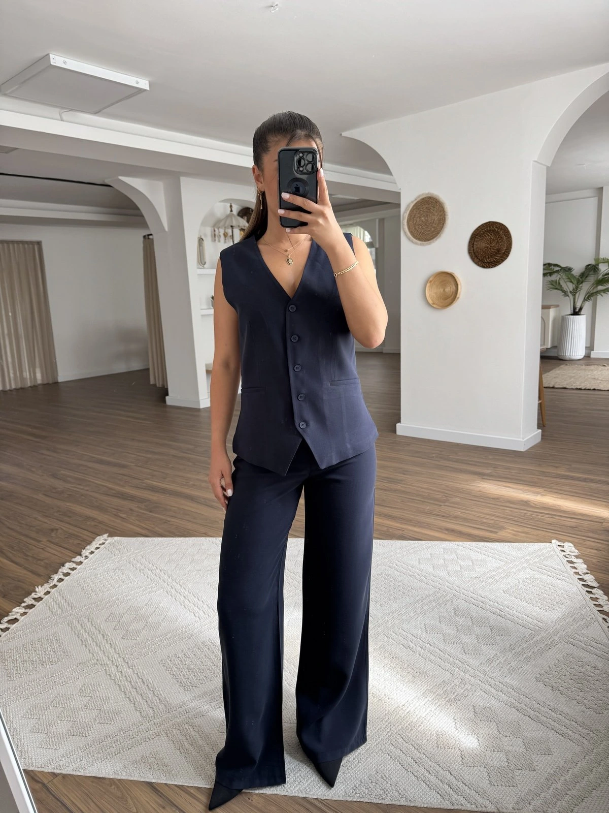 V YAKA YELEK PANTOLON TENSEL VİSKON TAKIM – LACİVERT