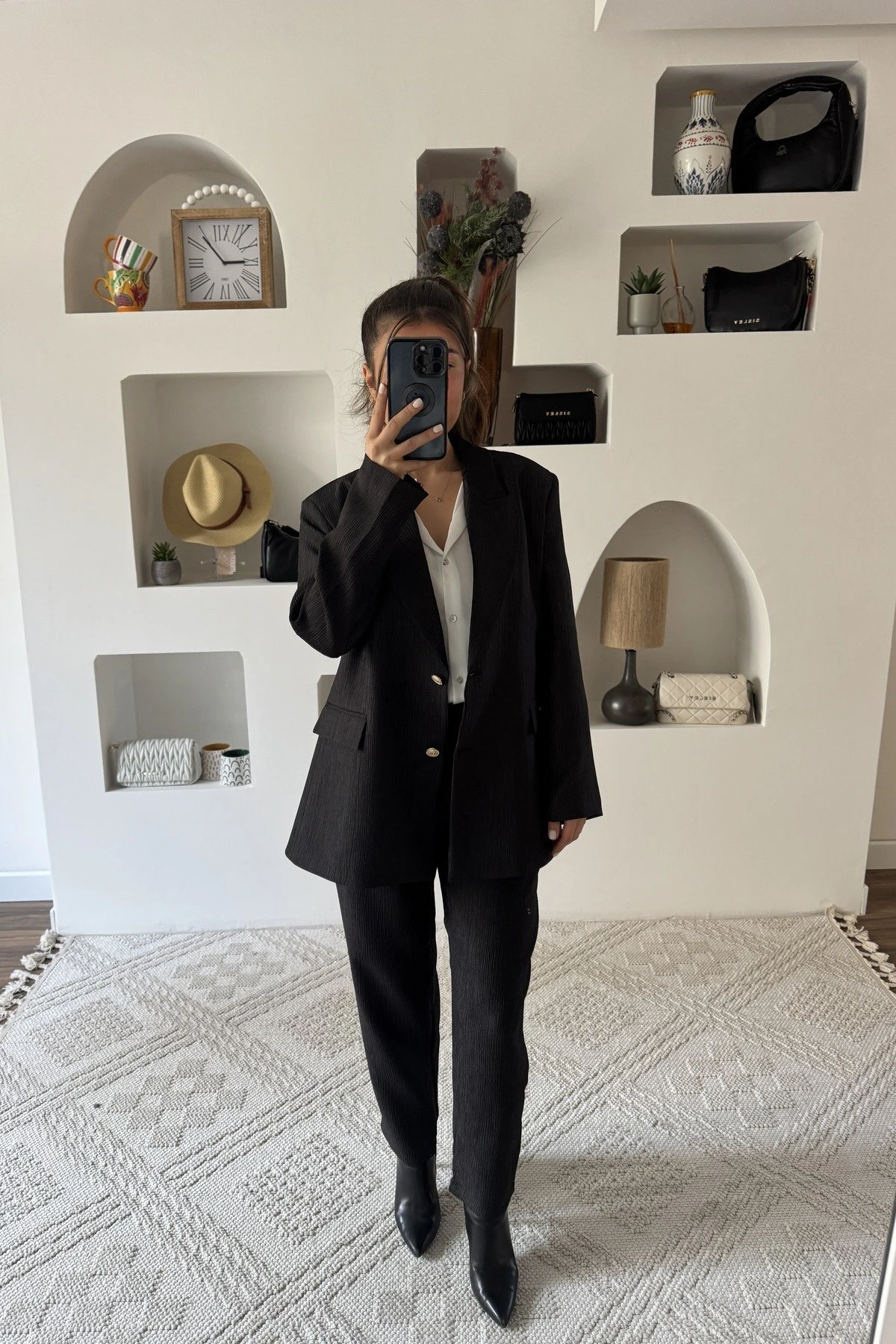 CEPLİ ÇİFT PİLE LİKRALI RAHAT PANTOLON – SİYAH