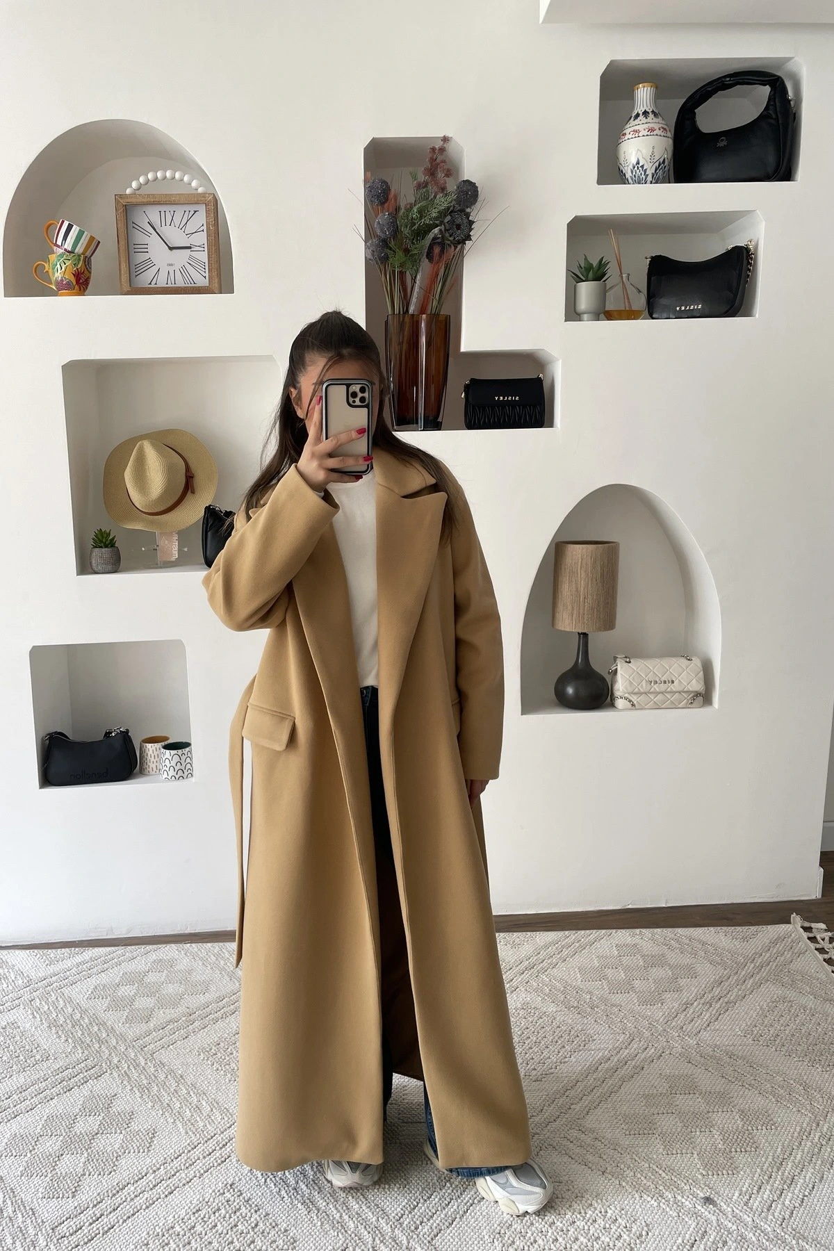 KAPAK CEP BEL KUŞAK ASTARLI UZUN KAŞE KABAN – CAMEL