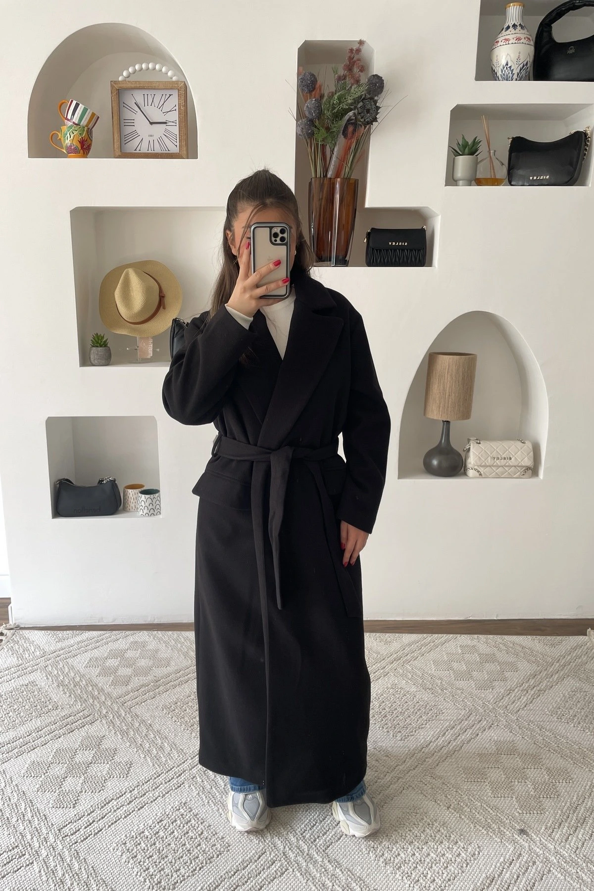 KAPAK CEP BEL KUŞAK ASTARLI UZUN KAŞE KABAN – SİYAH