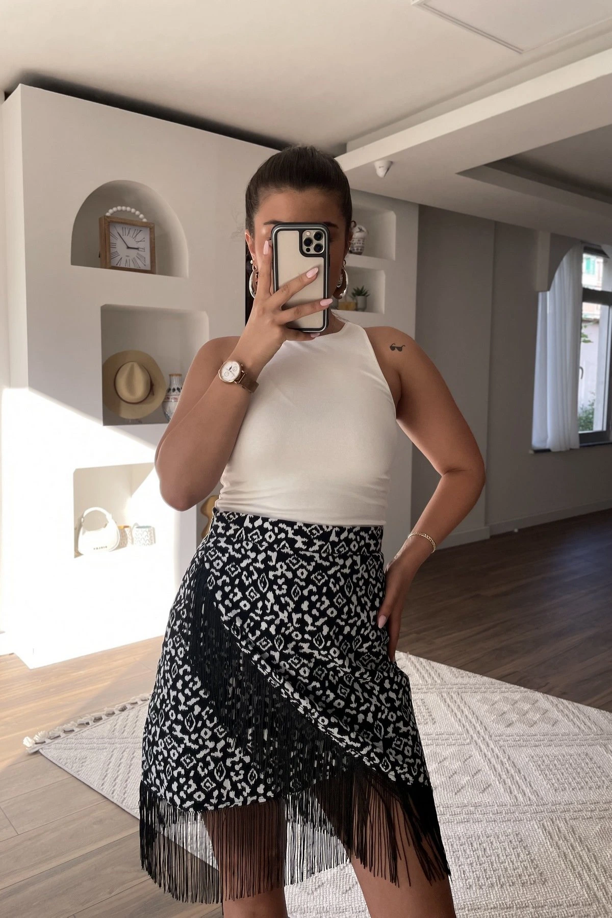 KAPAKLI PÜSKÜL DETAY PAMUK ETEK – SİYAH BEYAZ