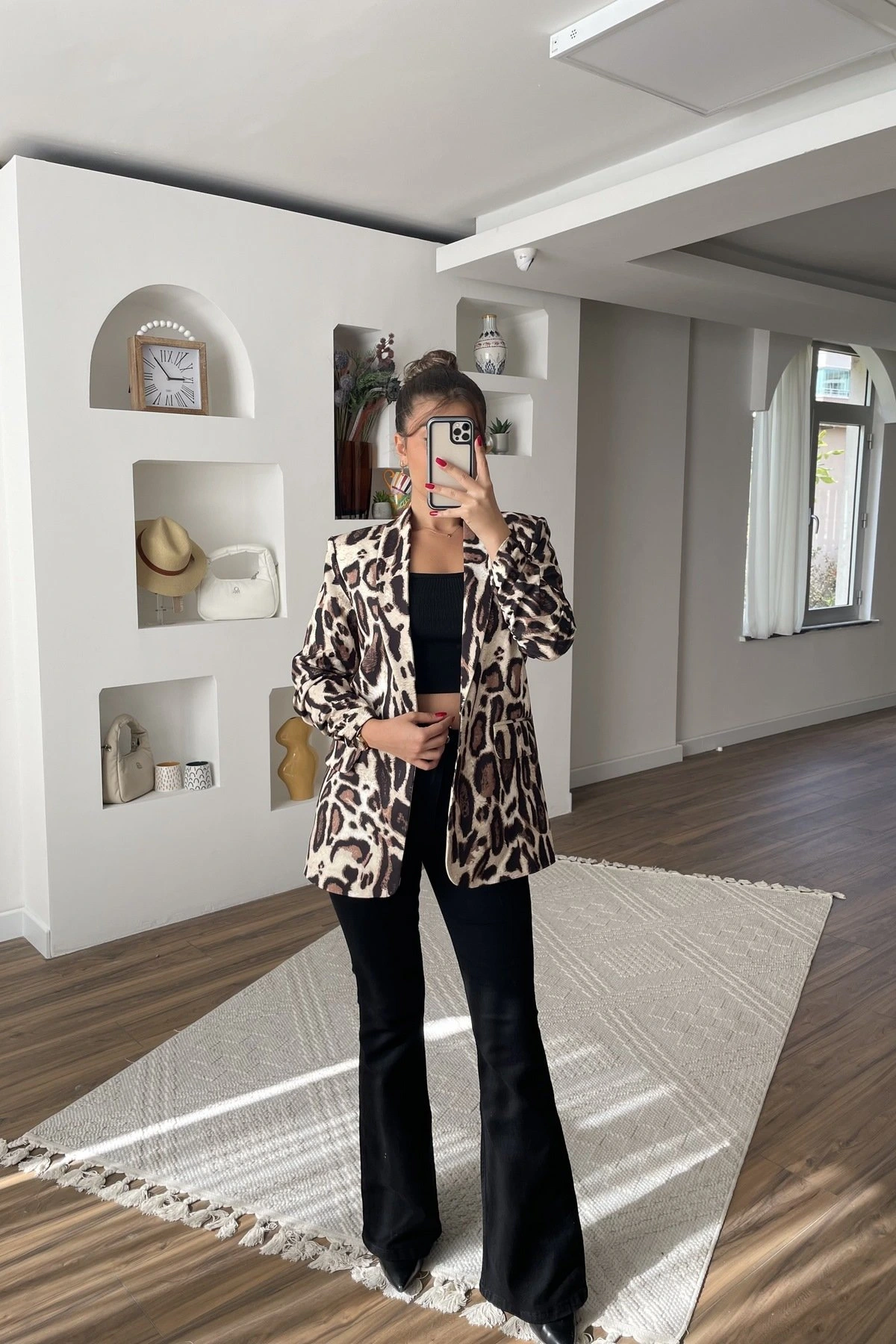 KOL BÜZGÜ ASTARLI VATKALI DESENLİ CEKET – LEOPAR