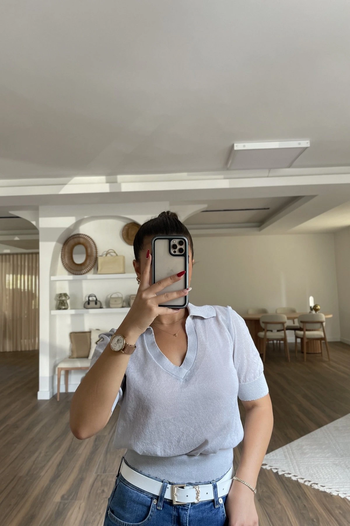 POLO V YAKA İNCE TRİKO BLUZ – GRİ