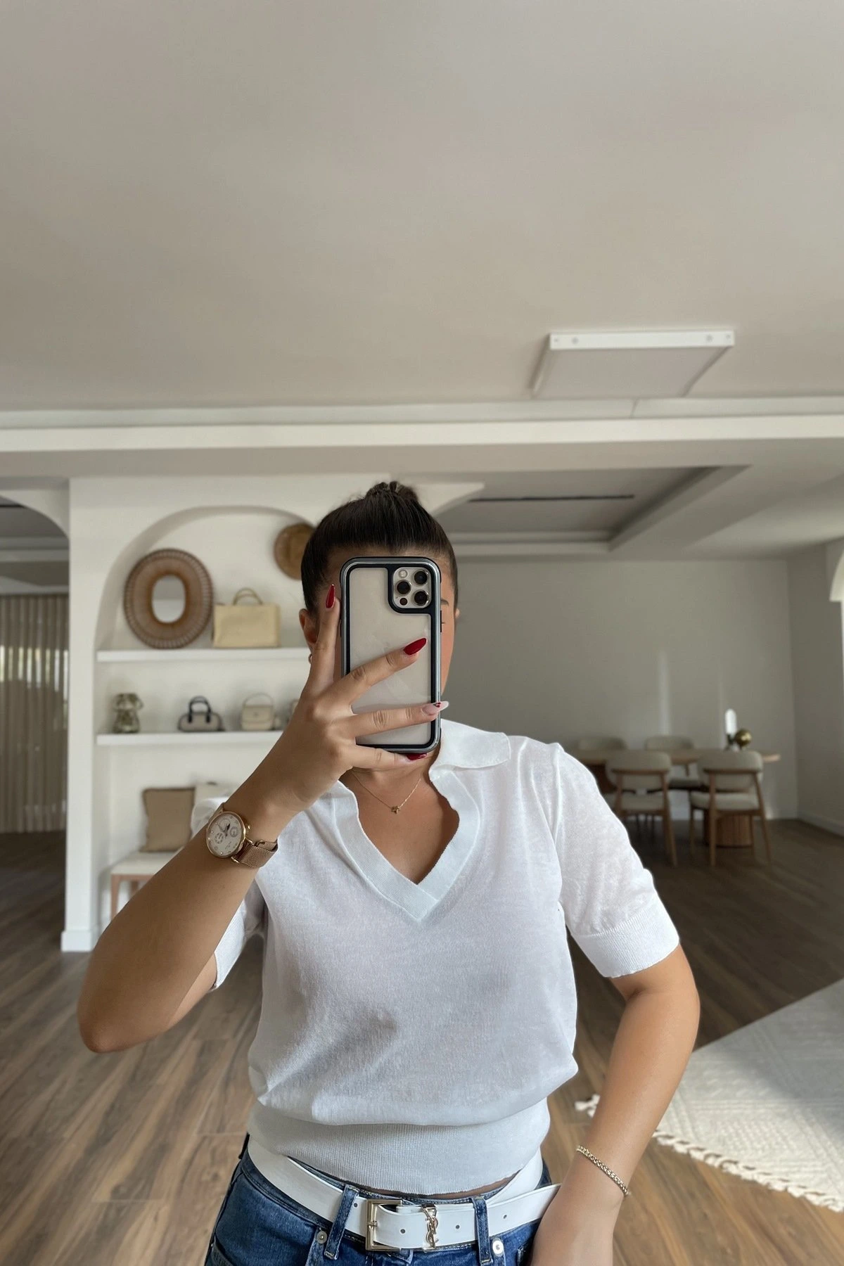 POLO V YAKA İNCE TRİKO BLUZ – BEYAZ