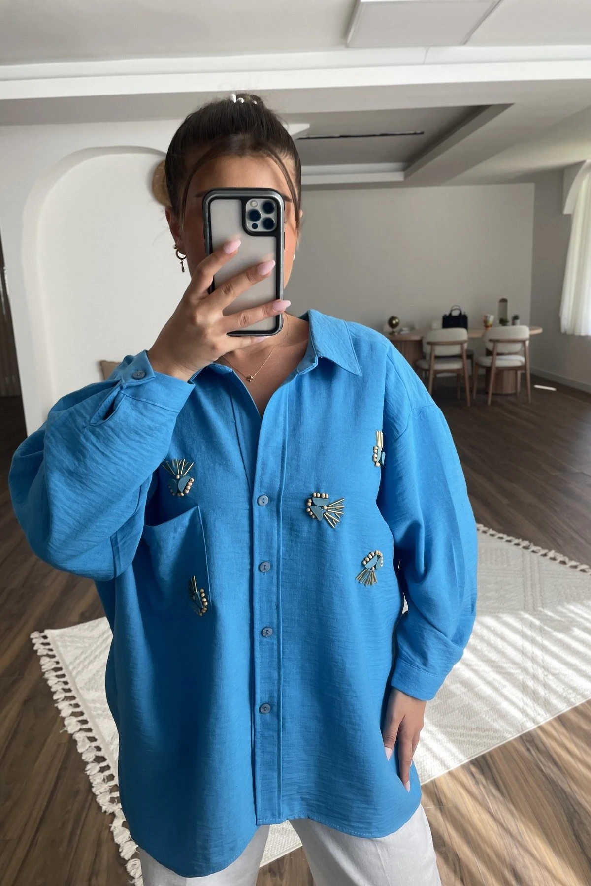 KEMİK AKSESUAR İŞLEME PAMUK SALAŞ GÖMLEK – TAŞ