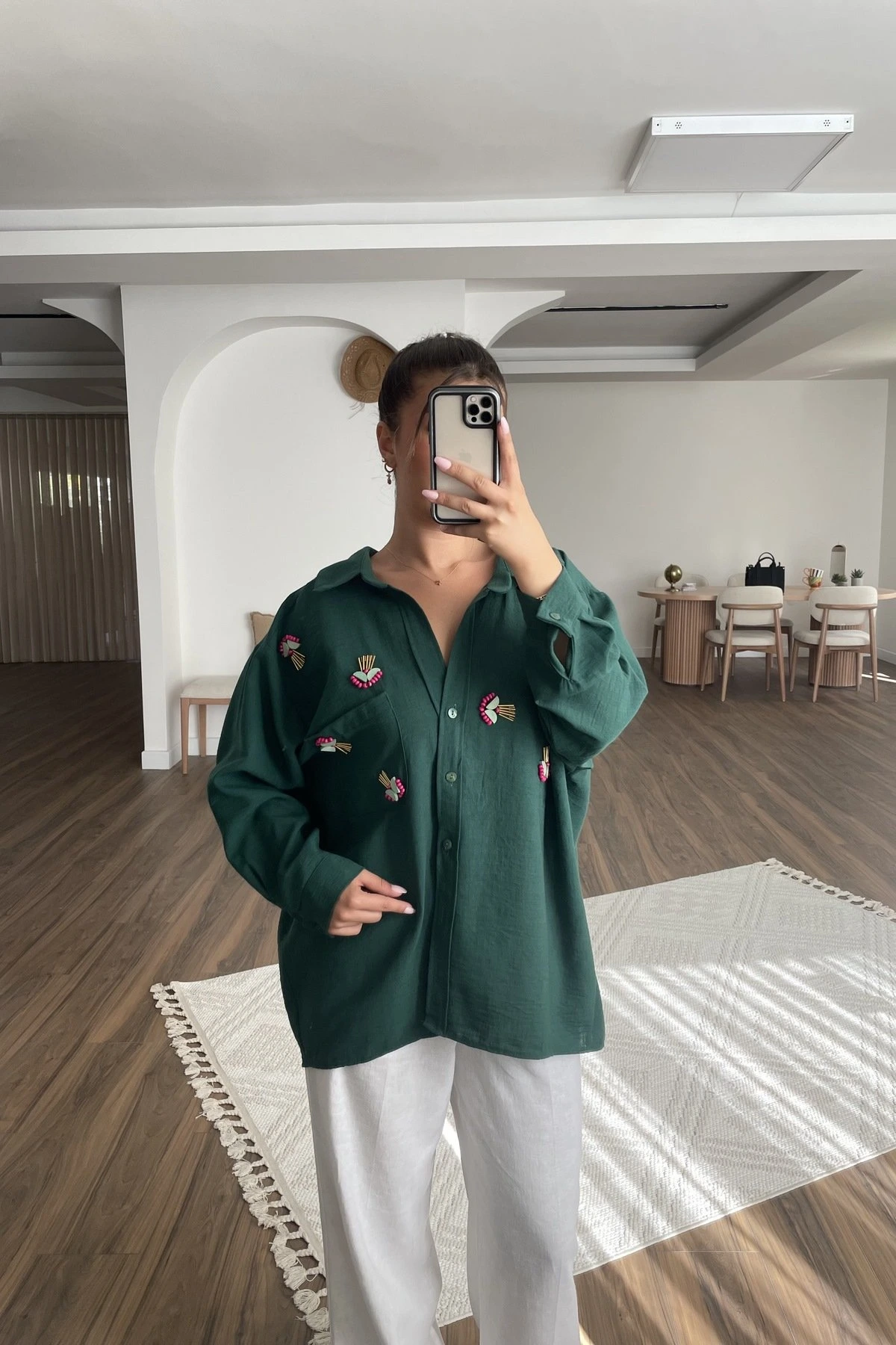 AHŞAP BONCUK İŞLEME VİSKOS SALAŞ GÖMLEK – ZÜMRÜT YEŞİL
