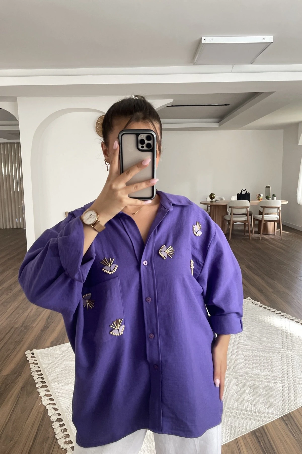 AHŞAP BONCUK İŞLEME VİSKOS SALAŞ GÖMLEK – MOR