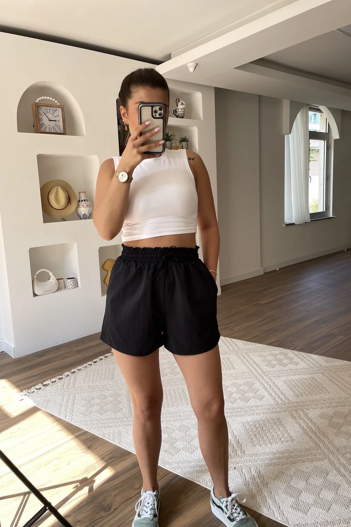 BEL LASTİK CEPLİ VİSKON ŞORT – SİYAH