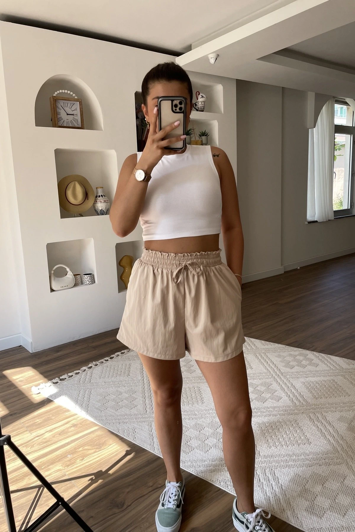 BEL LASTİK CEPLİ VİSKON ŞORT – TAŞ
