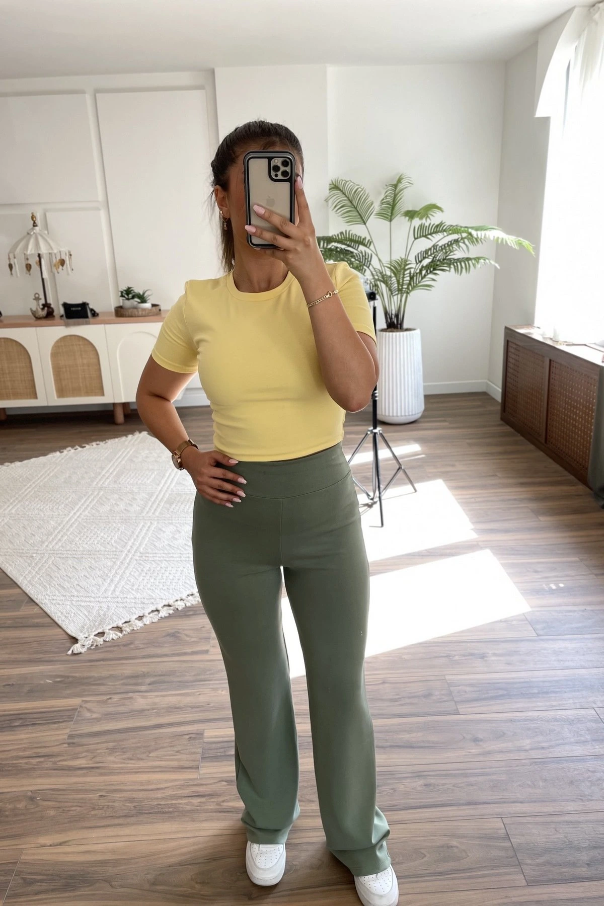 BEL LASTİK YÜKSEK BEL MODAL EŞOFMAN – HAKİ