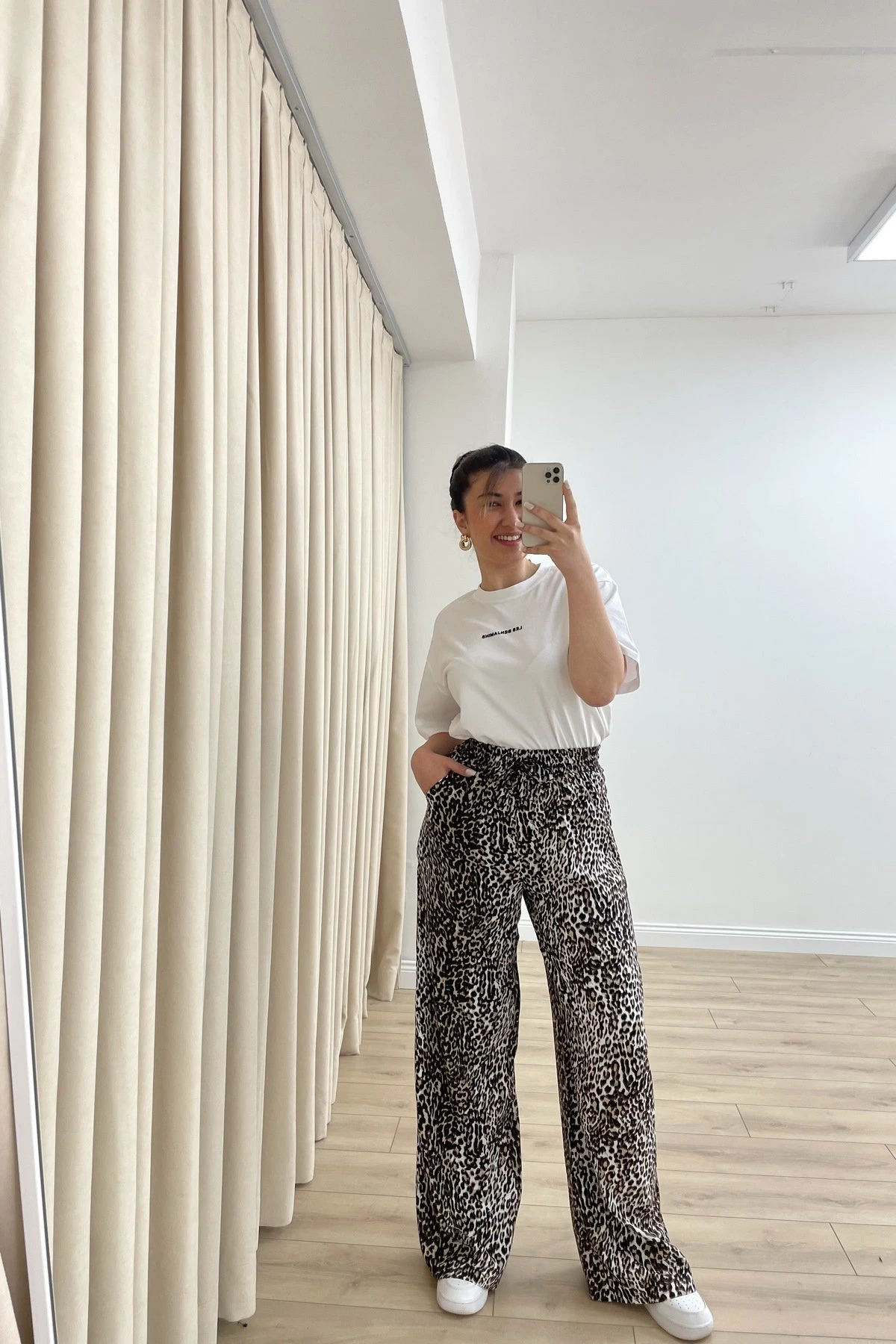 BEL LASTİKLİ CEPLİ VİSKON BOL PAÇA PANTOLON – BEJ LEOPAR