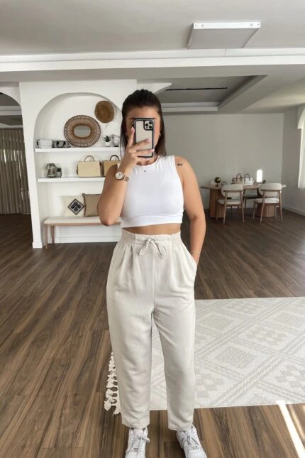 BEL LASTİK YÜKSEK BEL MODAL EŞOFMAN – ÇAĞLA YEŞİLİ