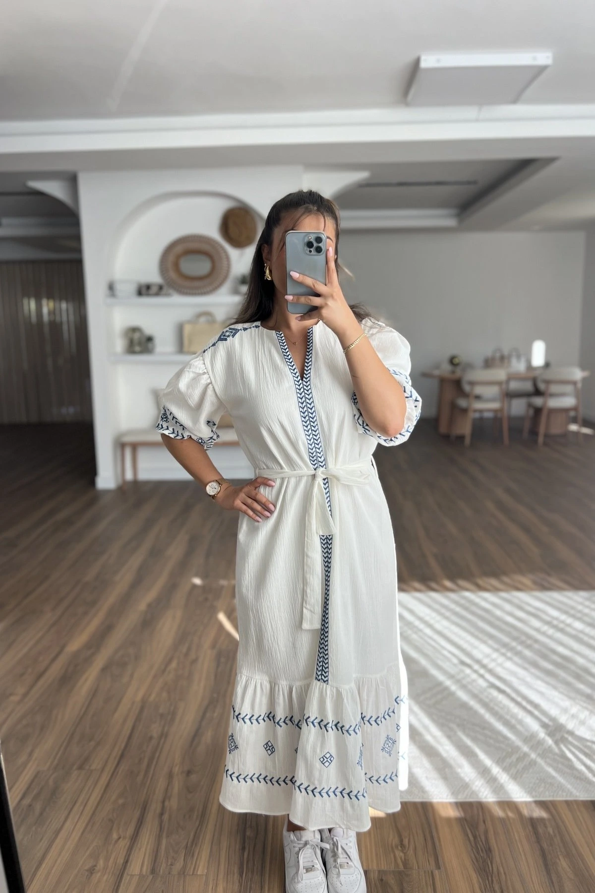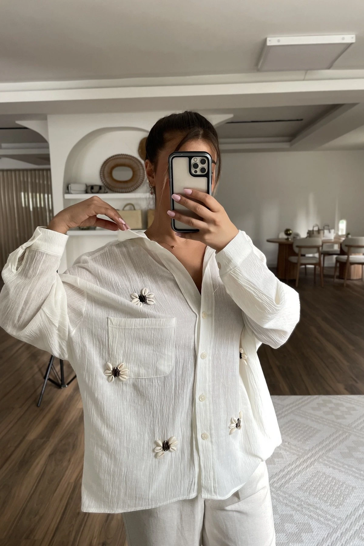 KEMİK AKSESUAR İŞLEME PAMUK SALAŞ GÖMLEK – BEYAZ