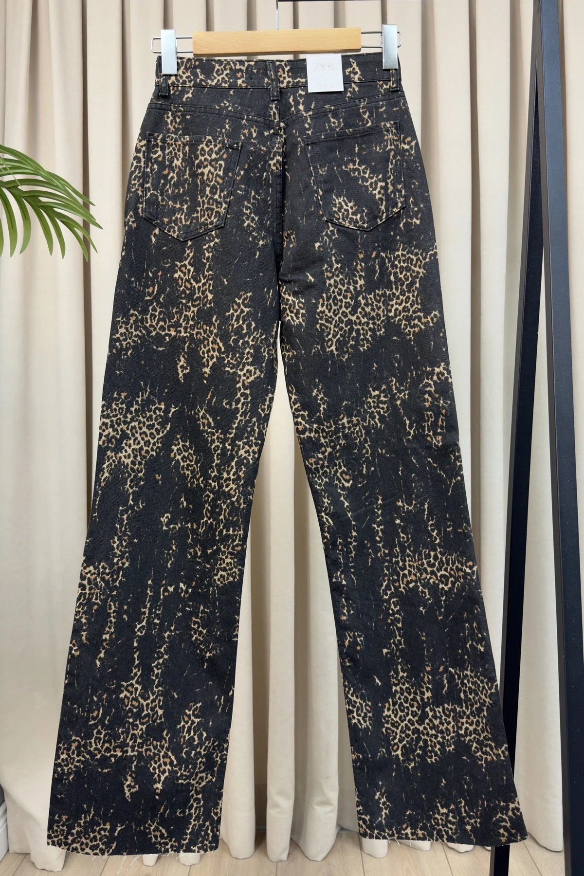 YÜKSEK BEL DESENLİ KESİK PAÇA PALAZZO JEAN – SİYAH-LEOPAR