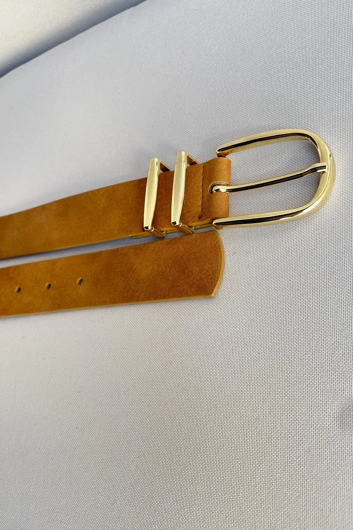 3,5CM ÇİFT DELİKLİ GOLD TOKA KEMER – CAMEL