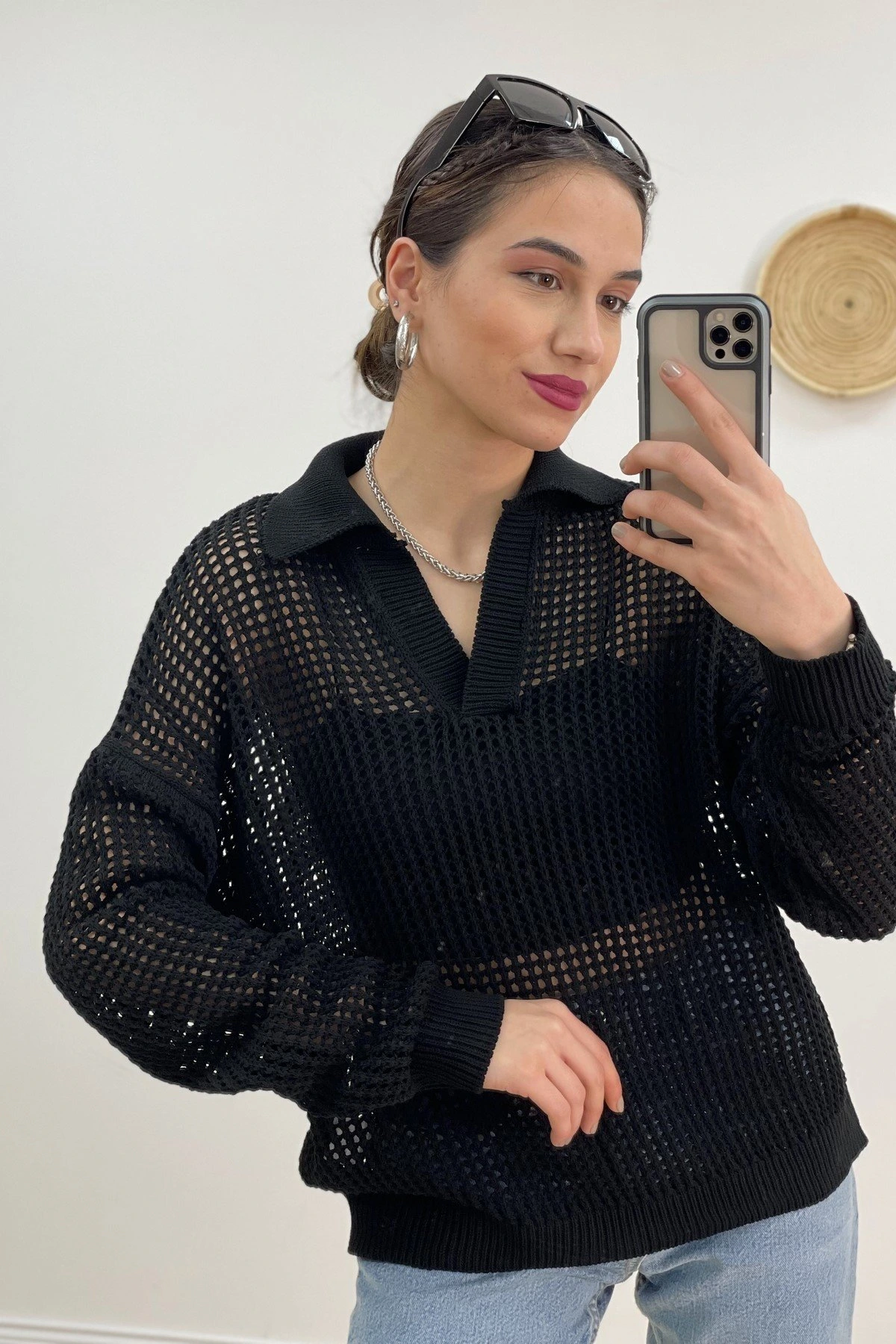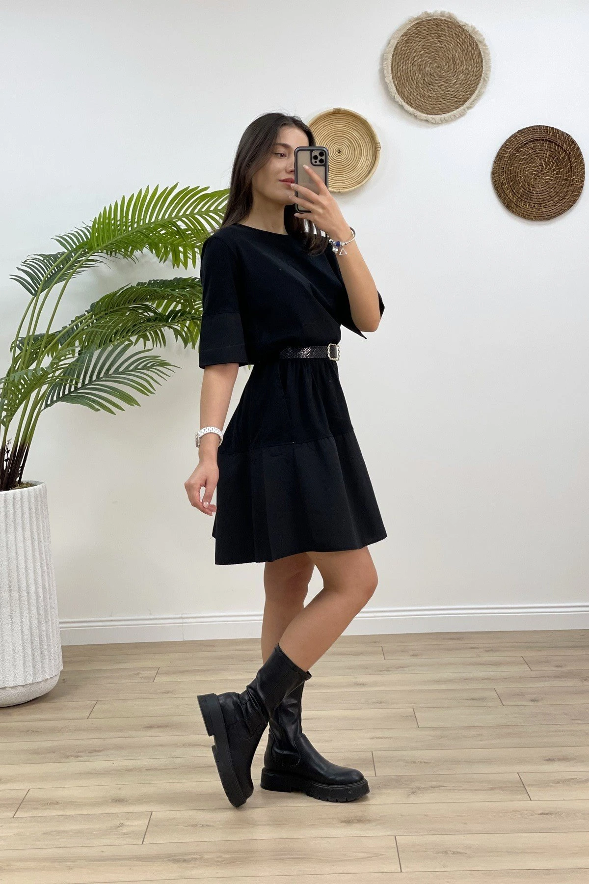 LİKRALI KOL DEKOLTELİ KISA KOL GÖMLEK – SİYAH