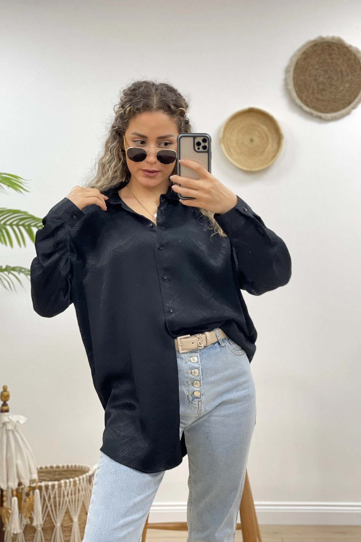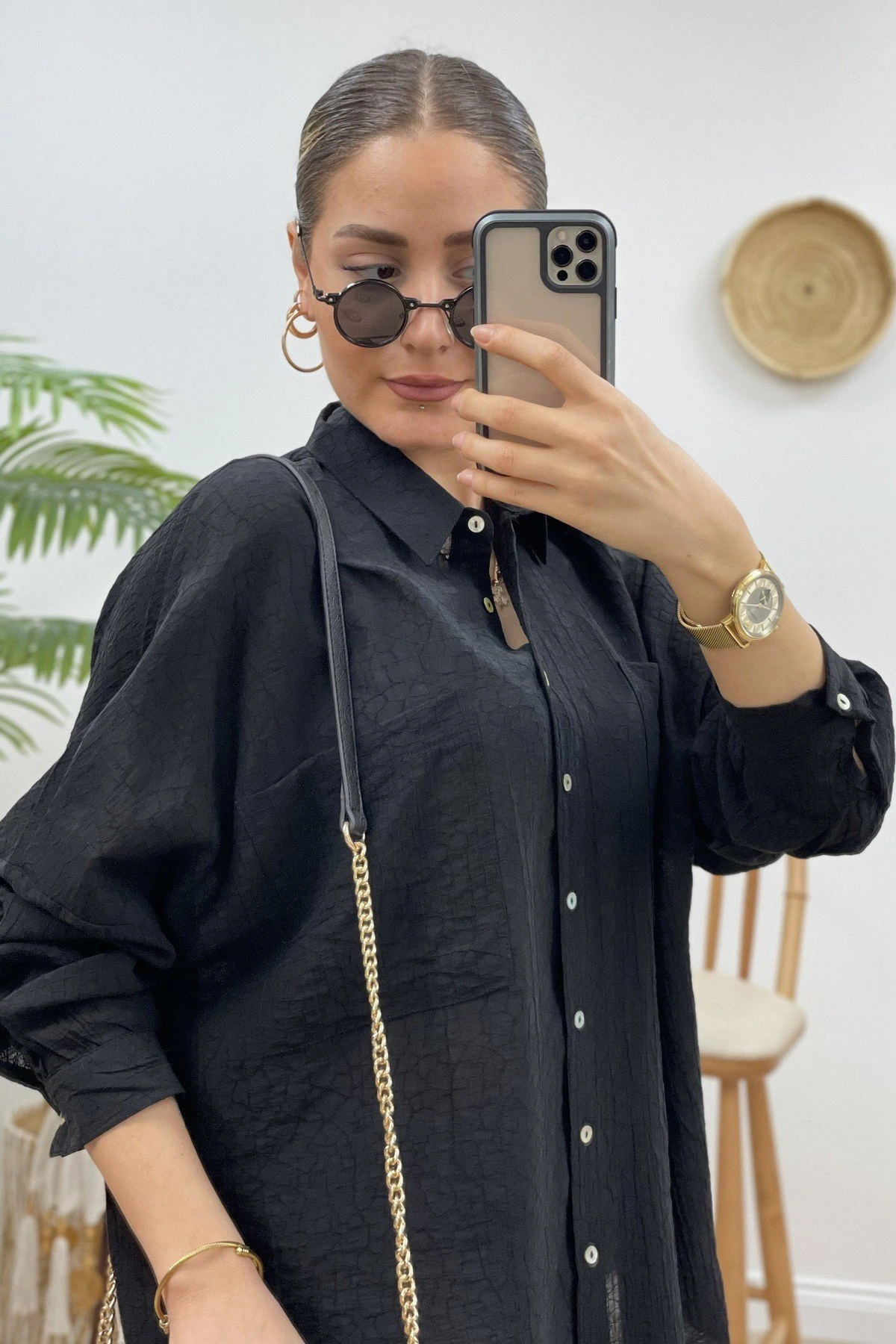 MANŞET VE YAKA BURBERY DESEN GÖMLEK – SİYAH