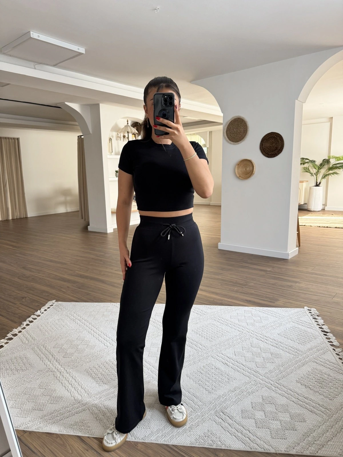 BEL BANTLI WİDELEG PANTOLON – SİYAH