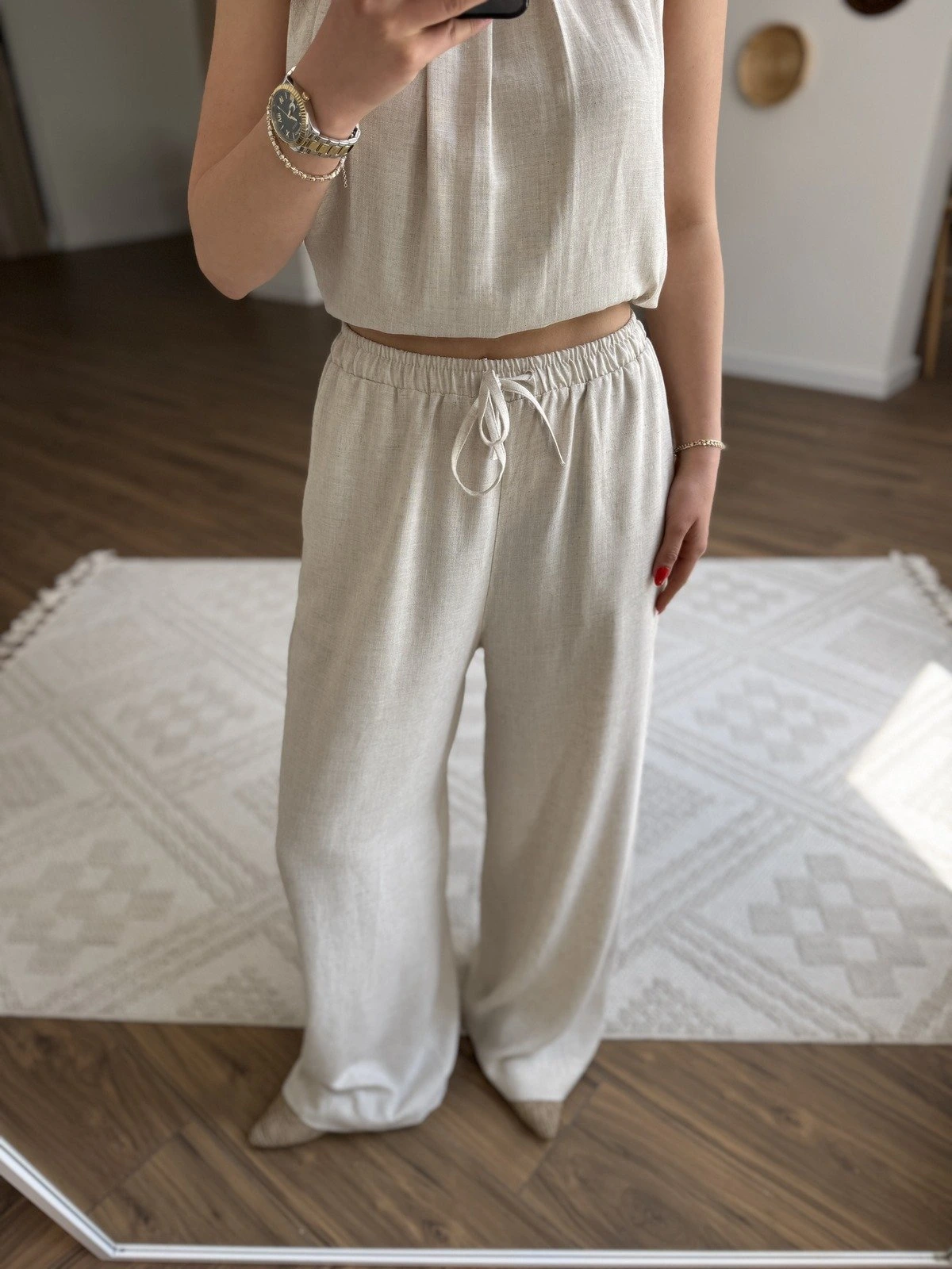 ARKA TEK CEP BEL LASTİK LYOSEL KETEN BOL PANTOLON – NATUREL