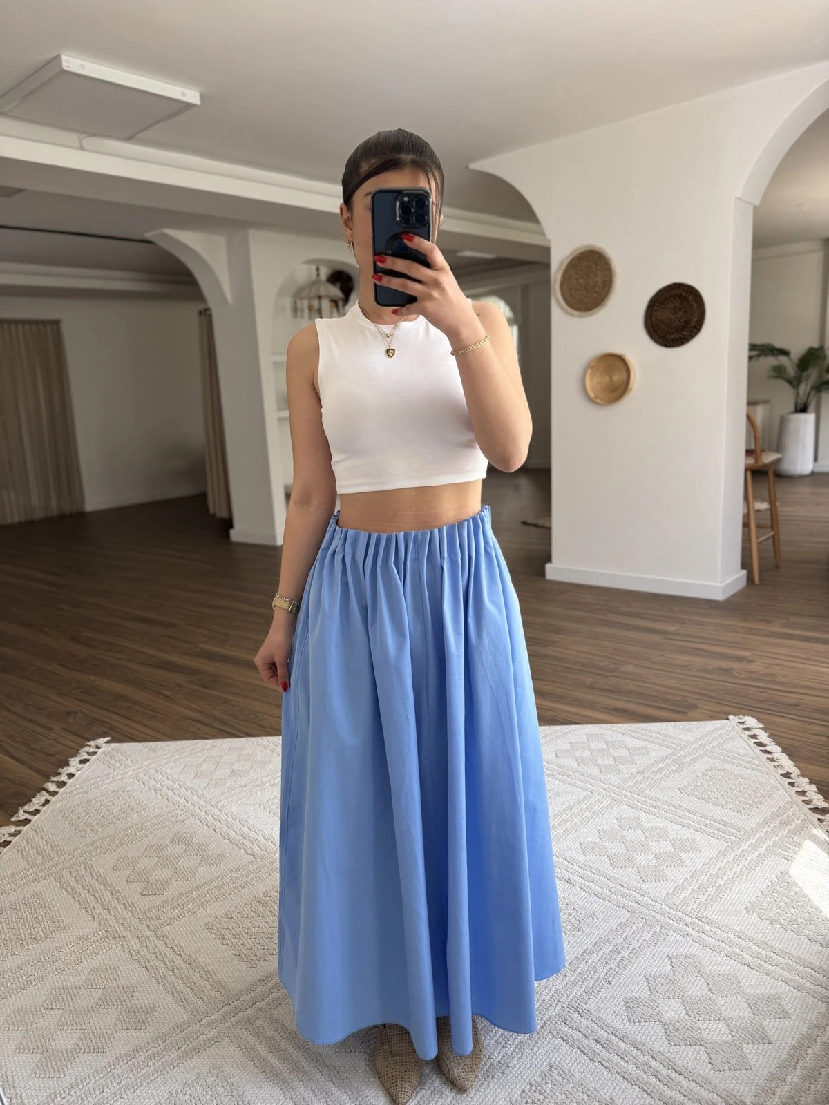 BEL FIRFIR LASTİK CEPLİ PAMUK UZUN ETEK – MAVİ