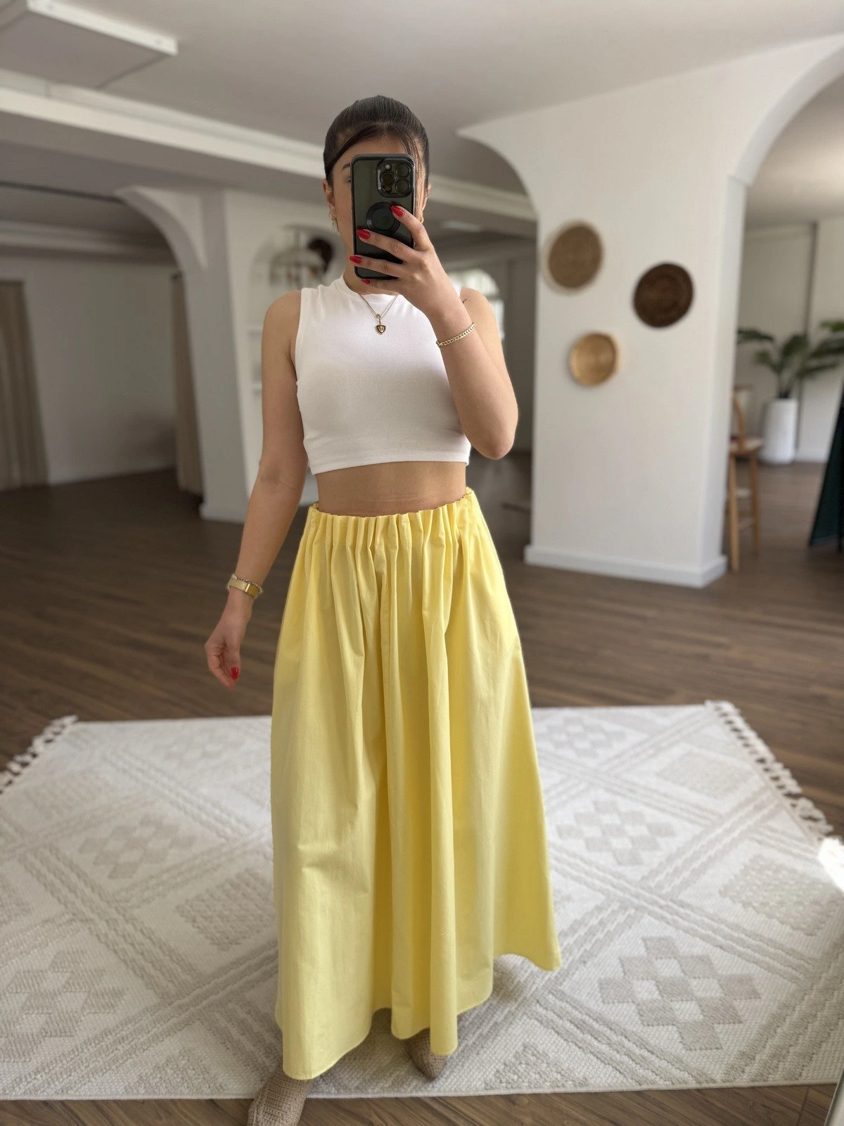 BEL FIRFIR LASTİK CEPLİ PAMUK UZUN ETEK – SARI