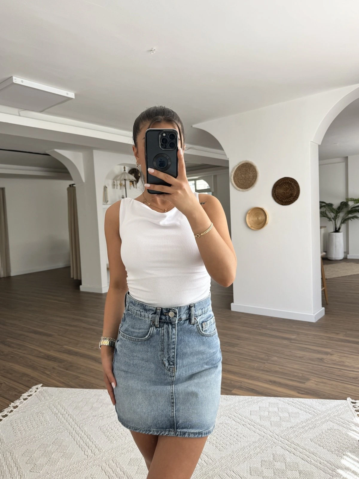 CEPLİ KISA JEAN ETEK – MAVİ