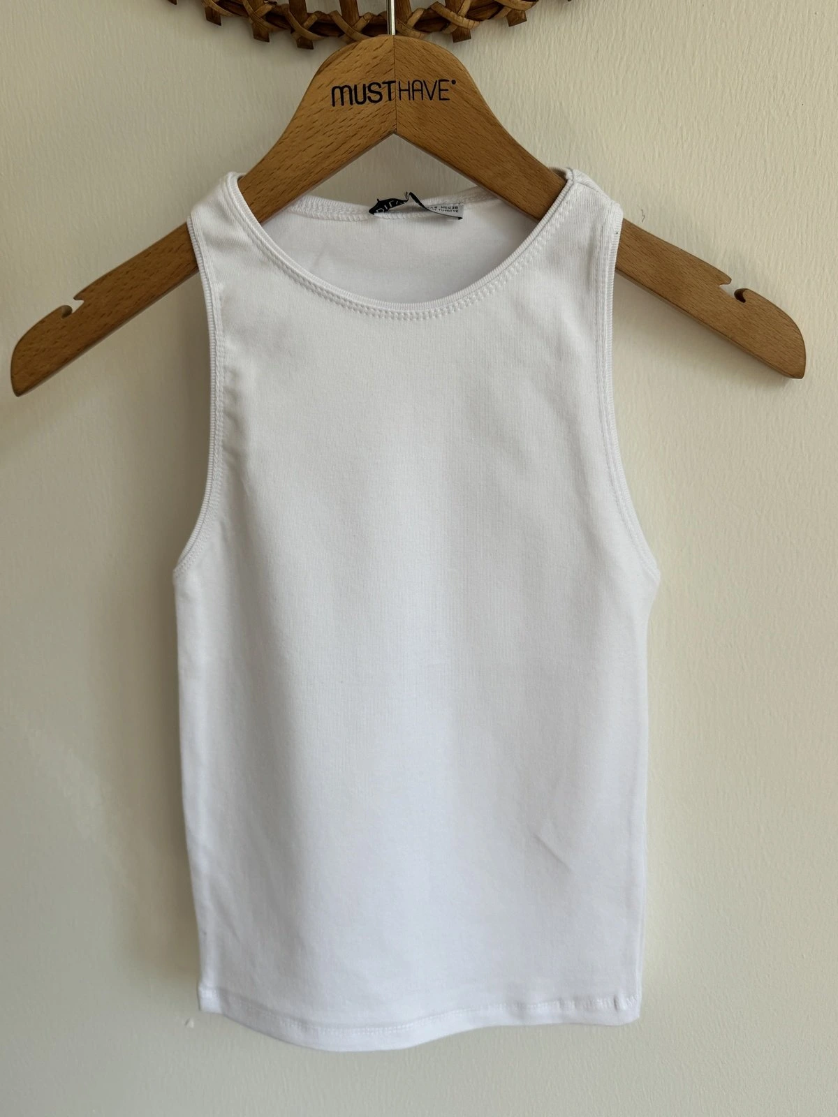 ÖN TAŞ BASKI HALTER YAKA FİTİLLİ PAMUK ATLET – EKRU