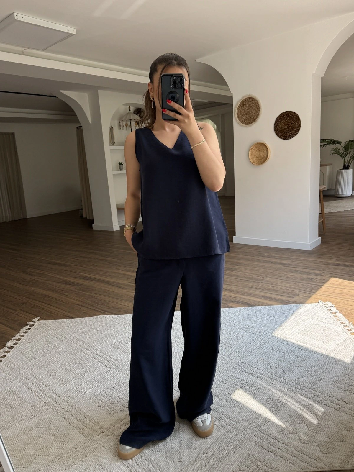 KALIN ASKI V YAKA BLUZ PANTOLON PAMUK TAKIM – LACİVERT