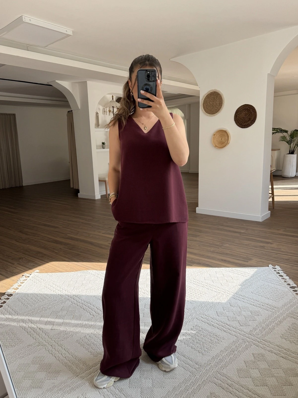 KALIN ASKI V YAKA BLUZ PANTOLON PAMUK TAKIM – BORDO