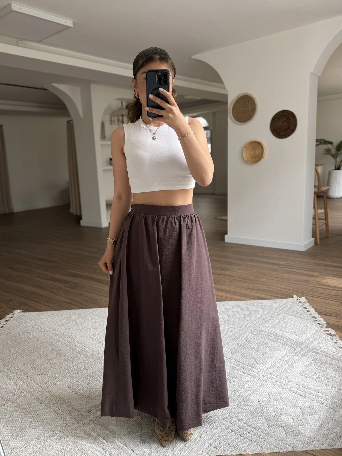 MAXİ BOY PAMUK BALON ETEK – KAHVE