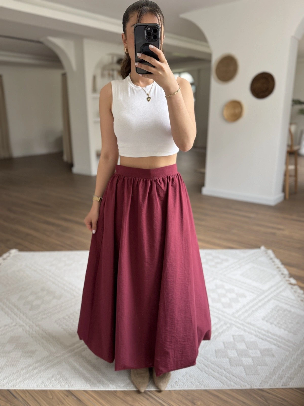 MAXİ BOY PAMUK BALON ETEK – BORDO