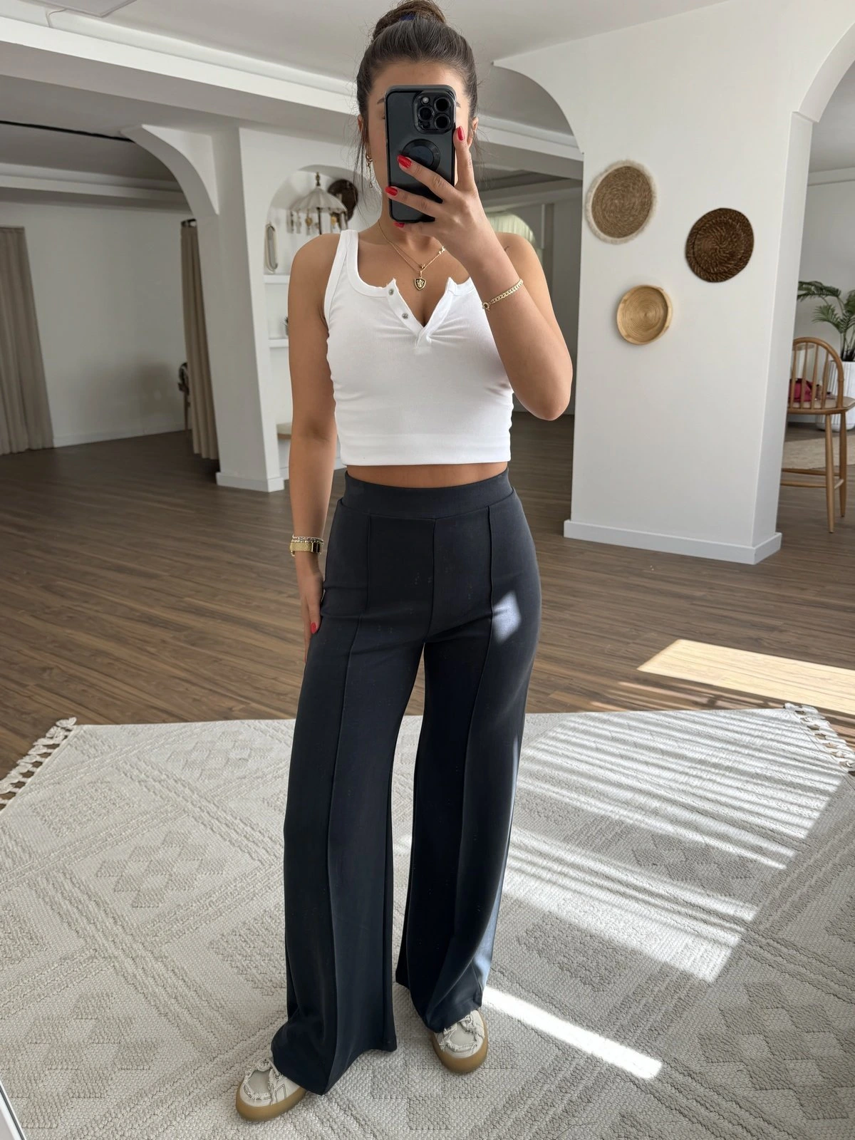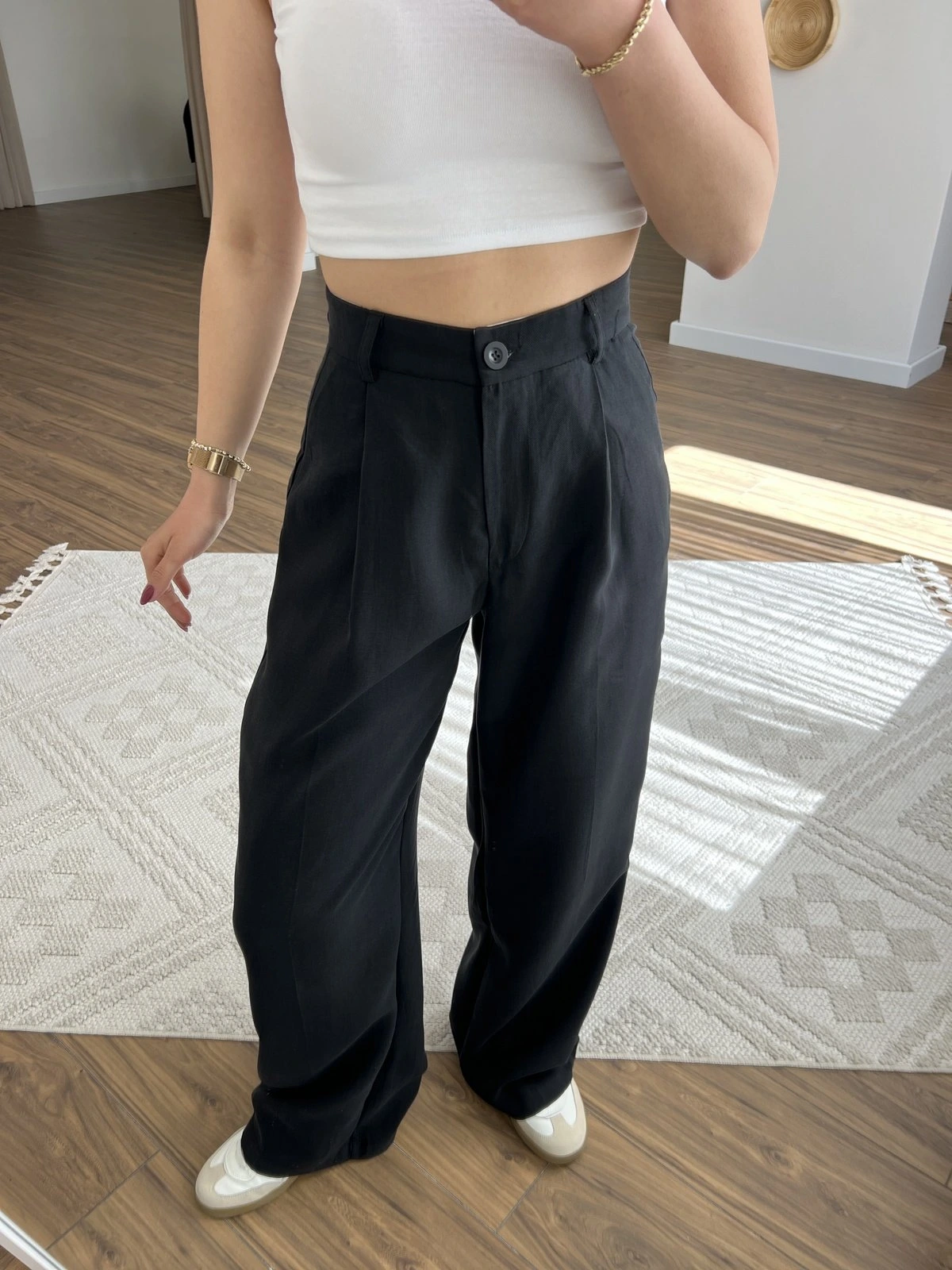 MODAL TENSEL PİLELİ PALAZZO PANTOLON – SİYAH