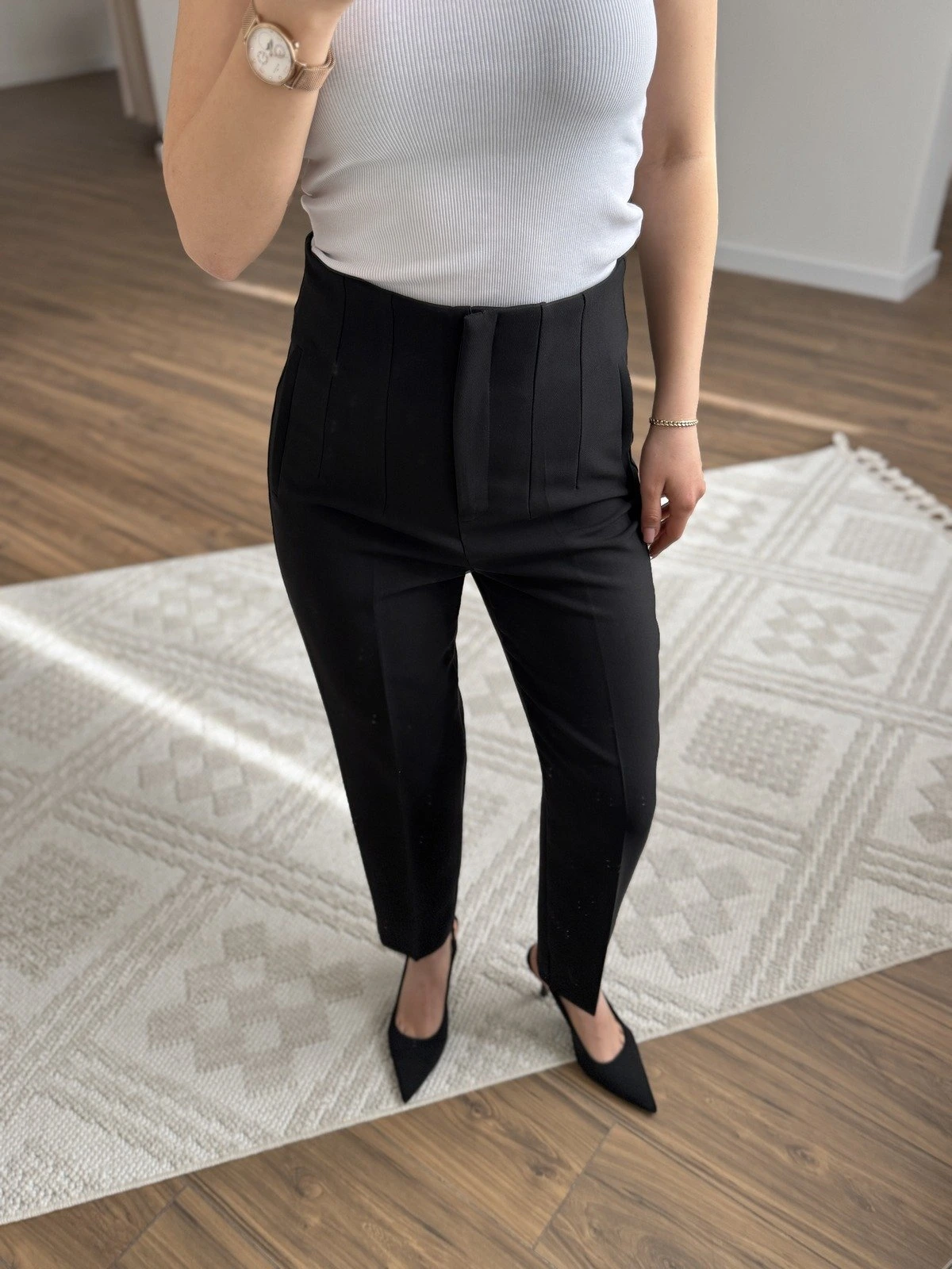 BEL BİLEK LASTİKLİ CEPLİ YAN DİKİŞ DETAY PANTOLON – SİYAH