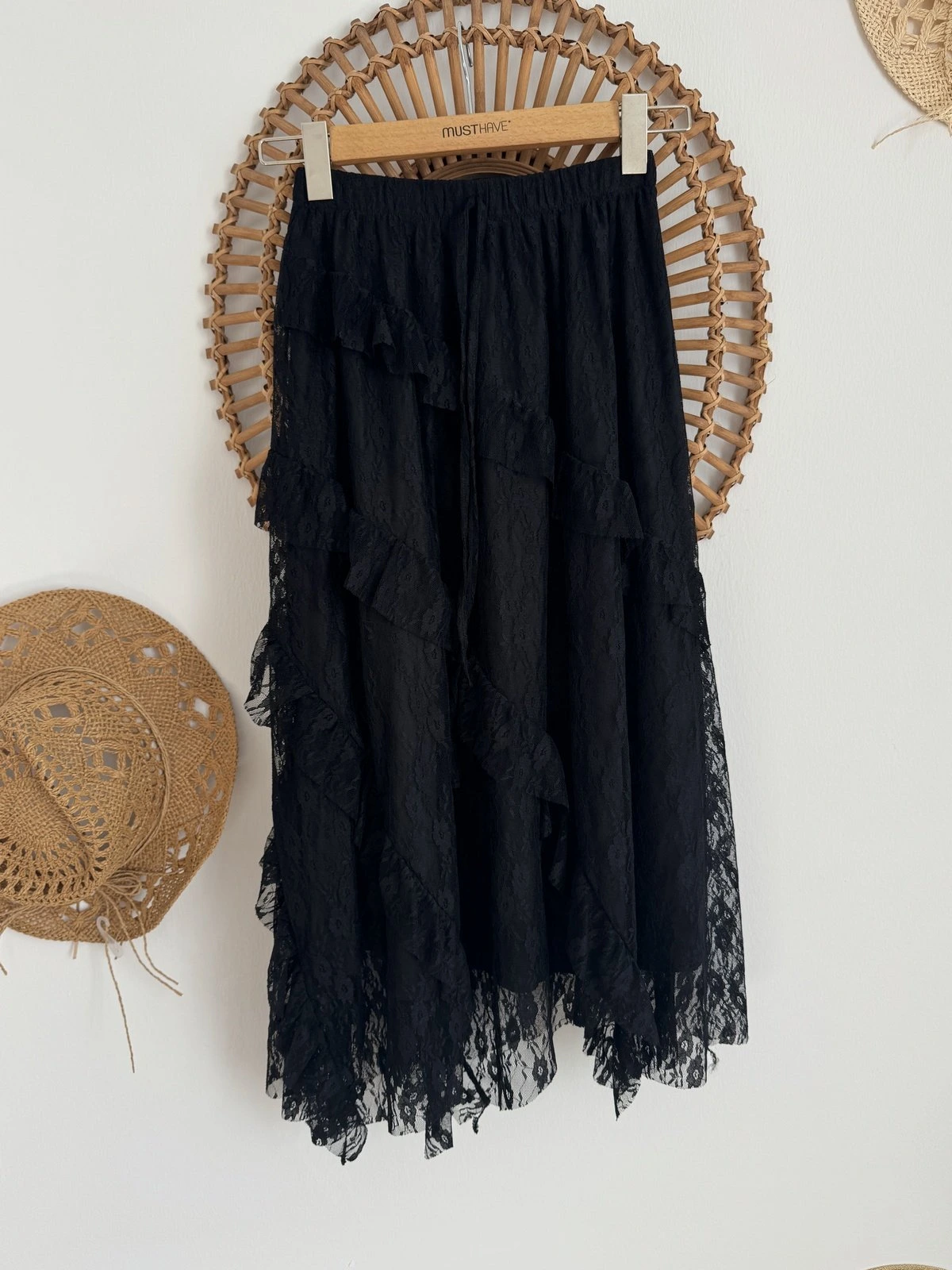 BEL LASTİK GÜPÜR FIRFIR DETAY ASTARLI TÜL ETEK – SİYAH