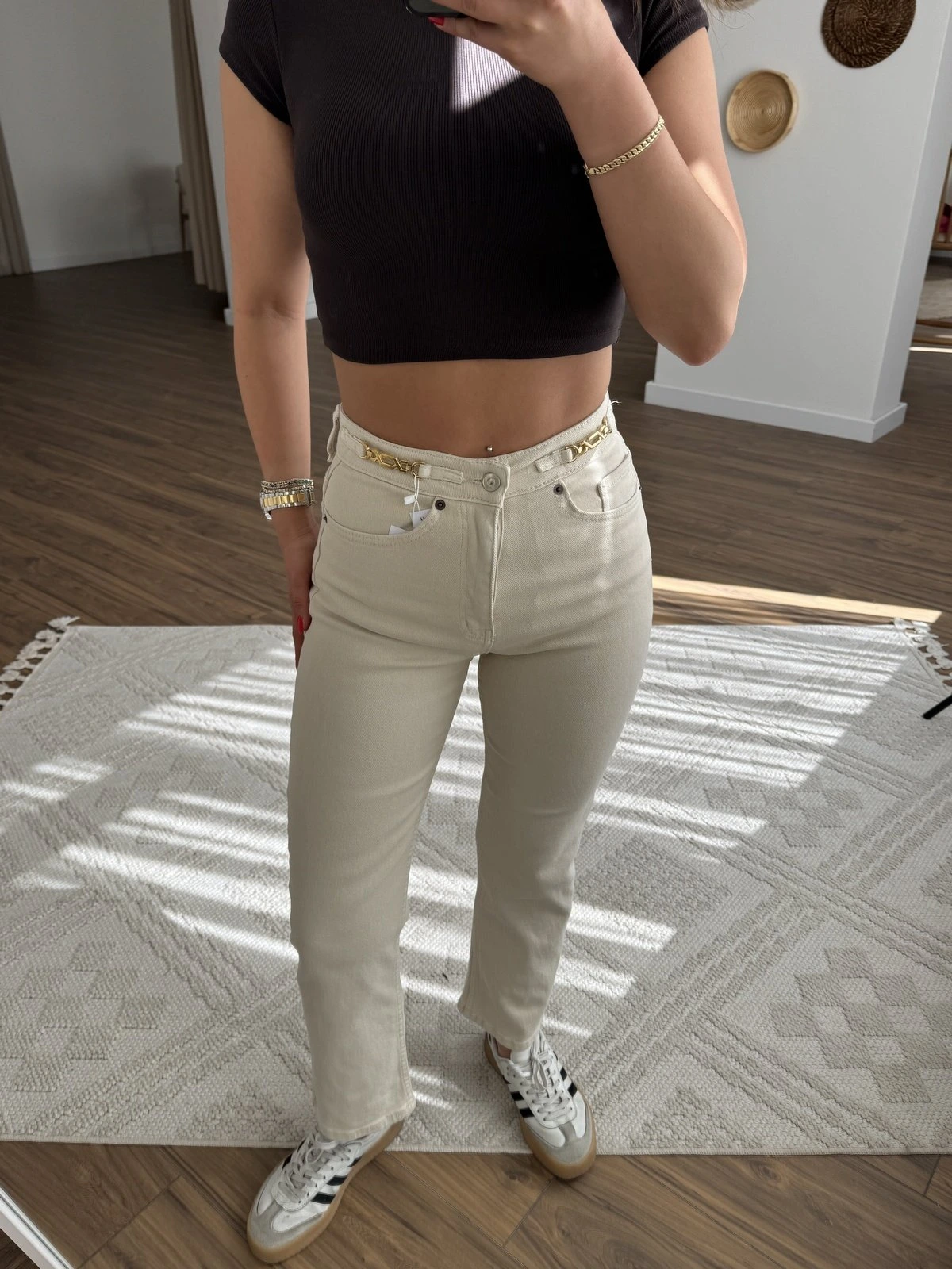 COS BEL GOLD AKSESUAR DETAY YÜKSEK BEL JEAN – BEYAZ