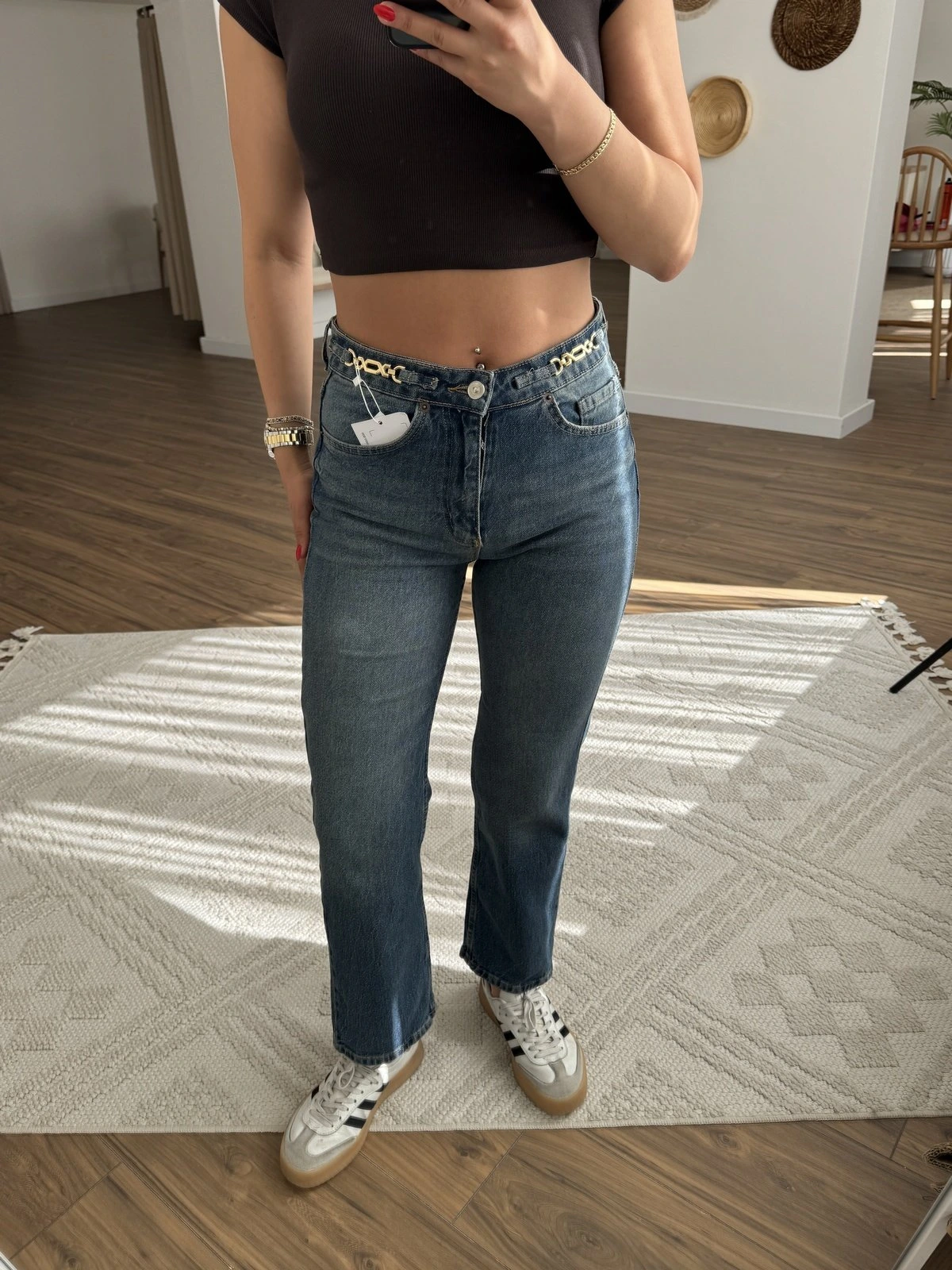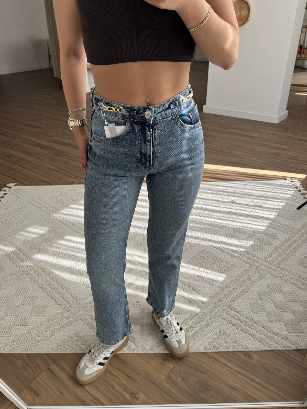 COS BEL GOLD AKSESUAR DETAY YÜKSEK BEL JEAN – MAVİ