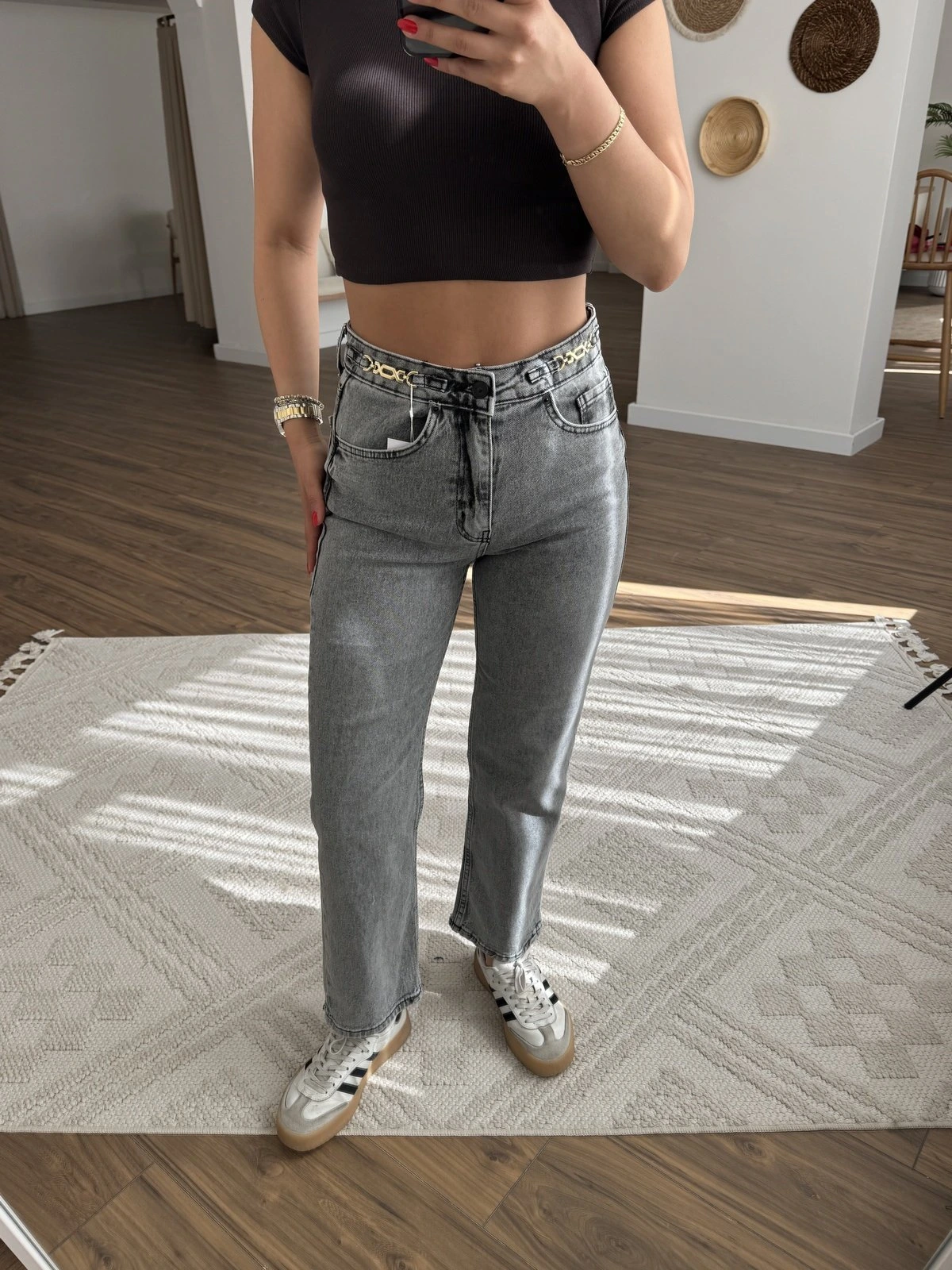 COS BEL GOLD AKSESUAR DETAY YÜKSEK BEL JEAN – GRİ